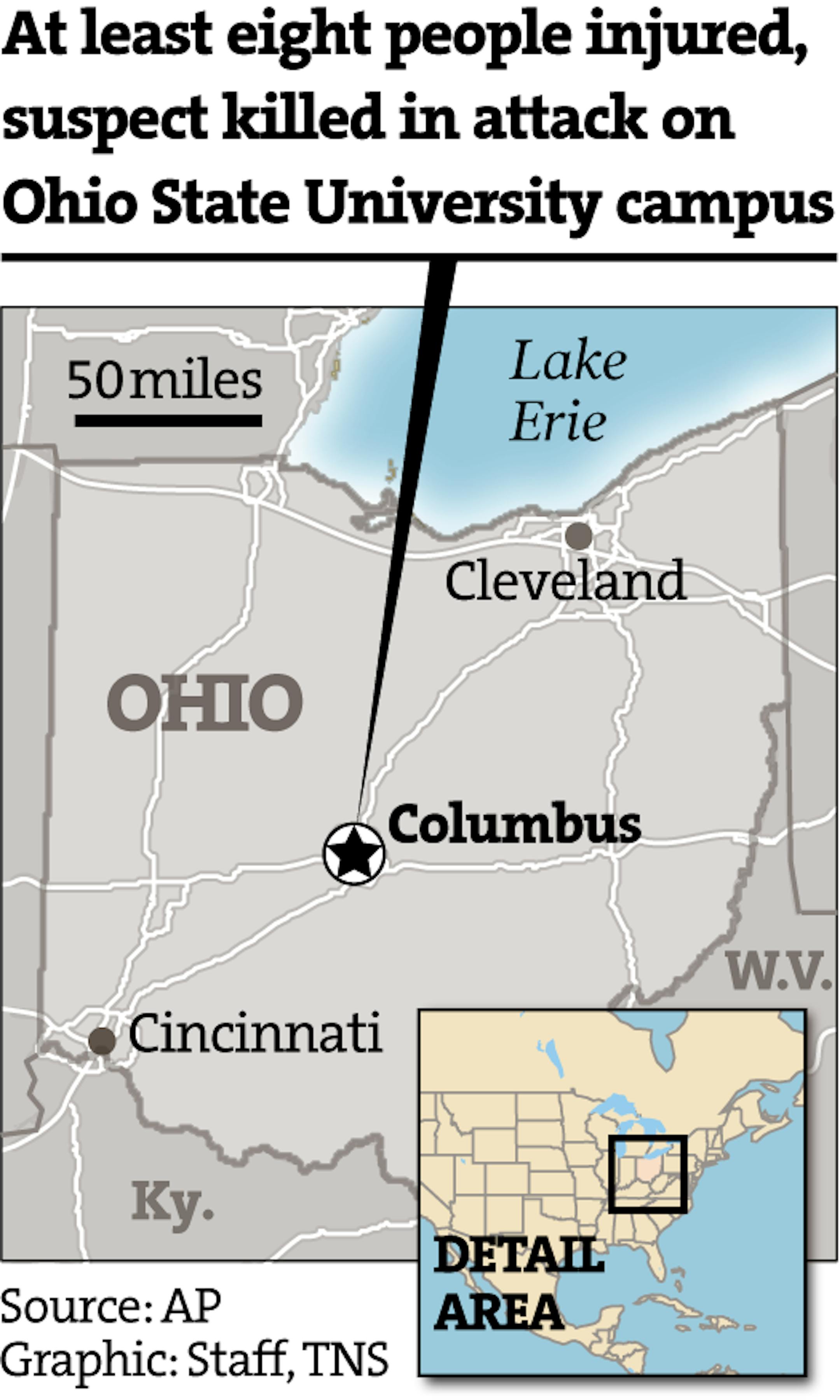 At least eight people injured, suspect killed in attack on Ohio State University campus