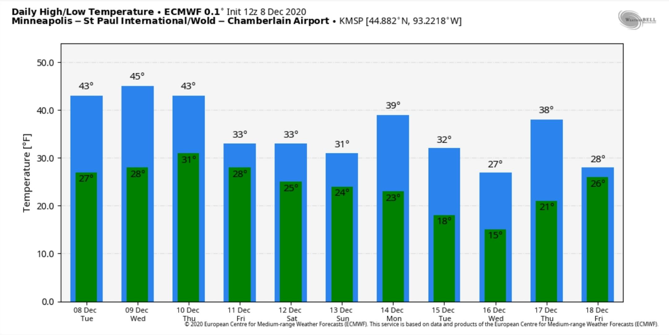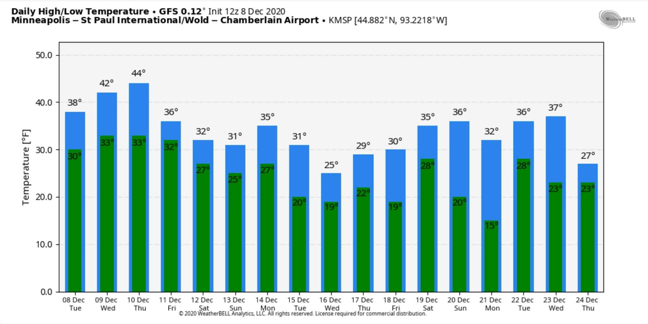 NOAA's GFS model is predicting a pre-Christmas thaw, which shouldn't really surprise anyone. Dr. Mark Seeley has been tracking weather and climate trends and admits it's not your grandfather's December anymore. He says 70 percent of all Decembers since 2000 have been warmer than average, and the warmest Decembers since 1895 have been observed since 2001.