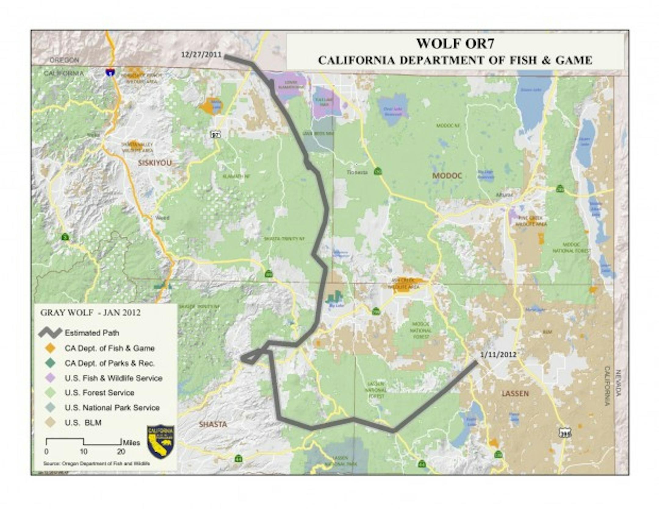 Biologists say that young males wolves who leave their packs are searching for mates and new territories -- such dispersal are how they spread. This one is not likely to find a mate in California, but he appears to be settling down for the winter. California wildlife officials don't provide enough details on his whereabouts to make it possible for any fan -- or hunter -- to find him.