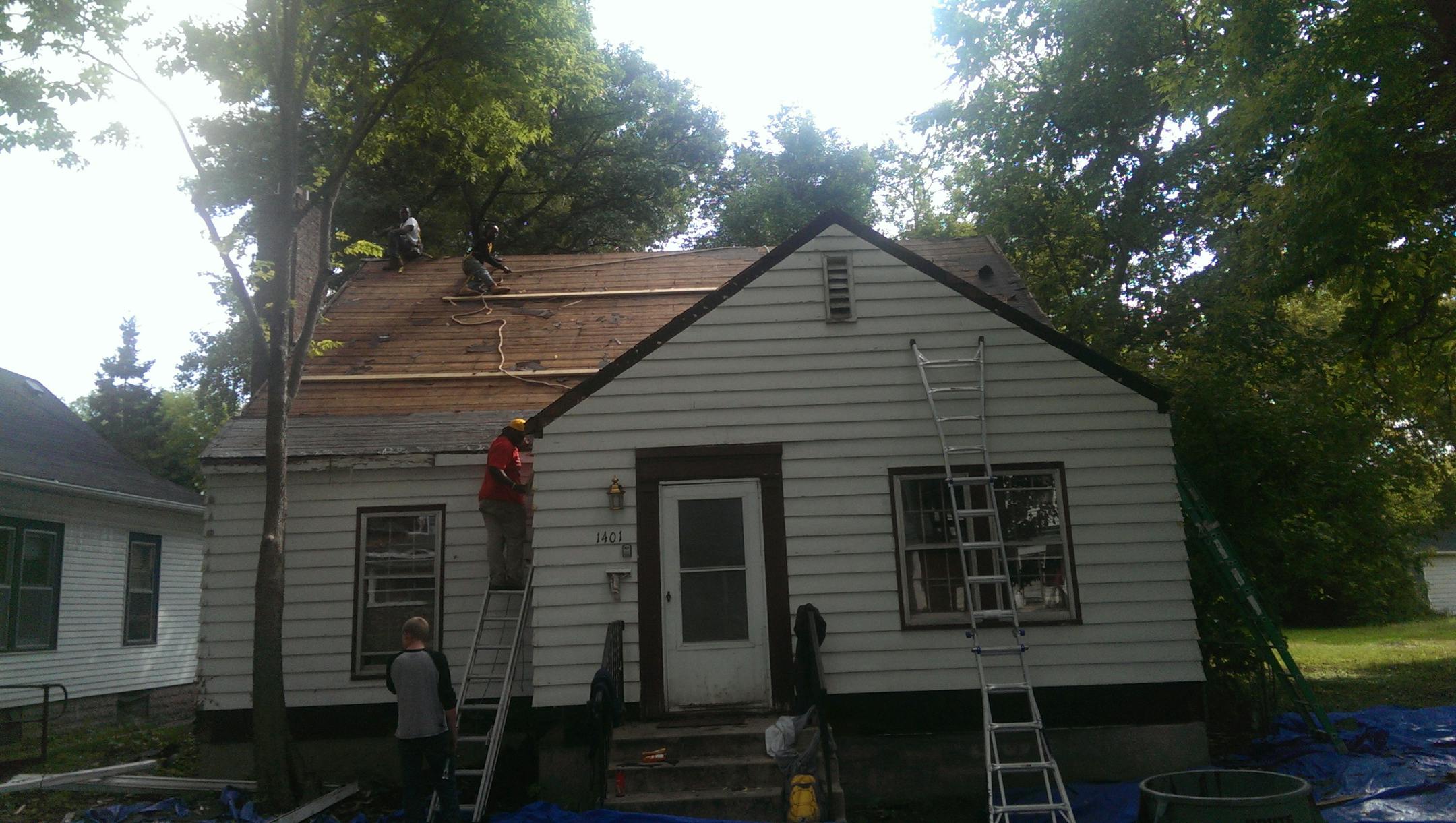 The house, which will eventually be sold, is at 1401 16th Av. N. in Minneapolis. If you have questions about the techniques you can stop by the house, or call Tom Schirber, a fellow at the U's Cold Climate Housing Center, 651-276-0670 Here's a pic taken this week by Shirber showing crews that are working with Urban Homeworks tearing off the roof in preparation for a new external insulation system.