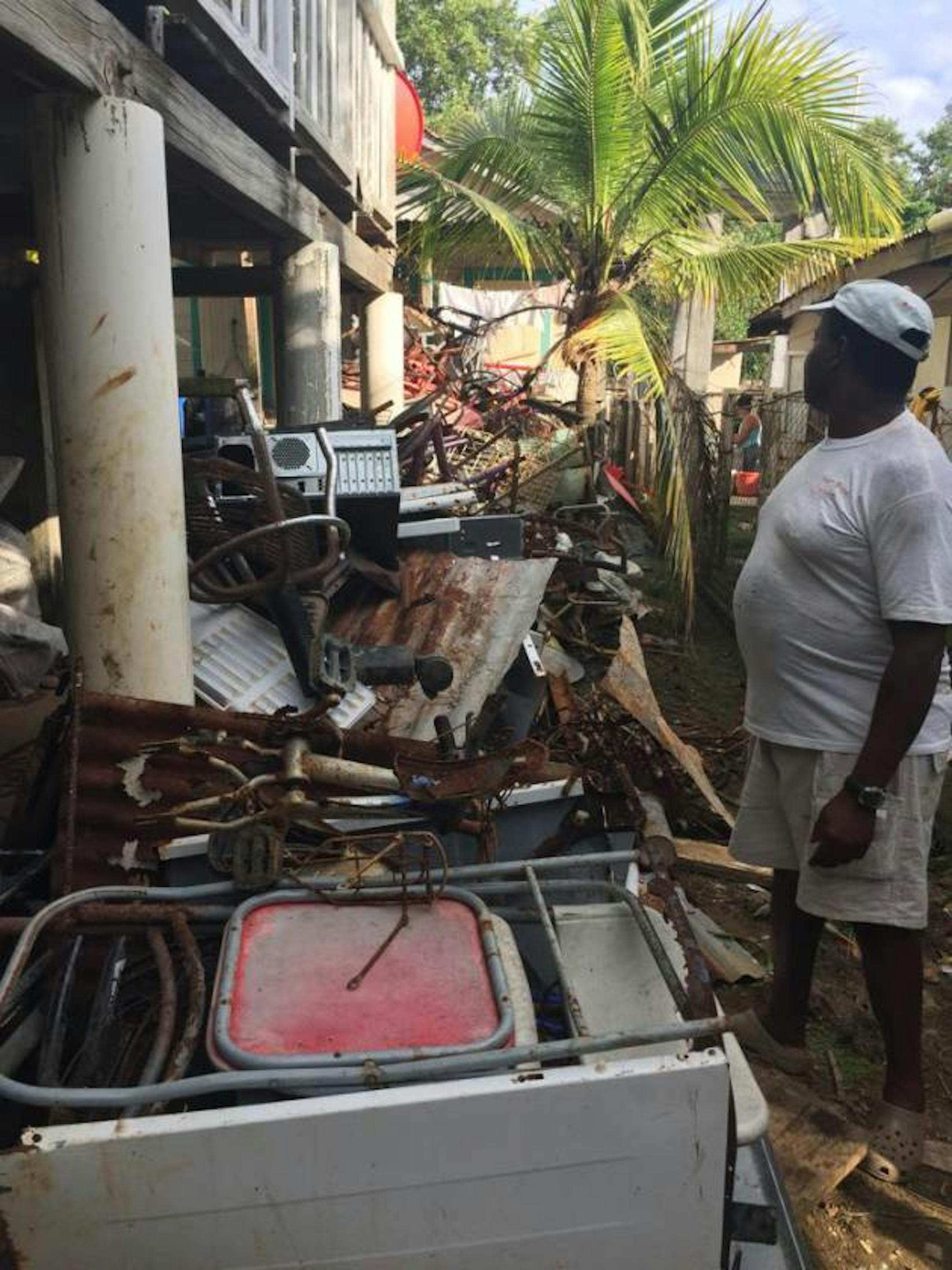 For William, who has lived on the Bay Island of Utila since he was 17, collecting and recycling the metals from bikes, air conditioners, refrigerators, stoves, engines, chairs, abandoned planes, and everything in-between has become a sort of a one-man job. Over the last four months, he's collected enough scrap metal and old parts to fill up his yard and another space nearby. But he's holding on to all of it until the price of metals goes back up again and he can sell it to a recycler on the mainland of Honduras.