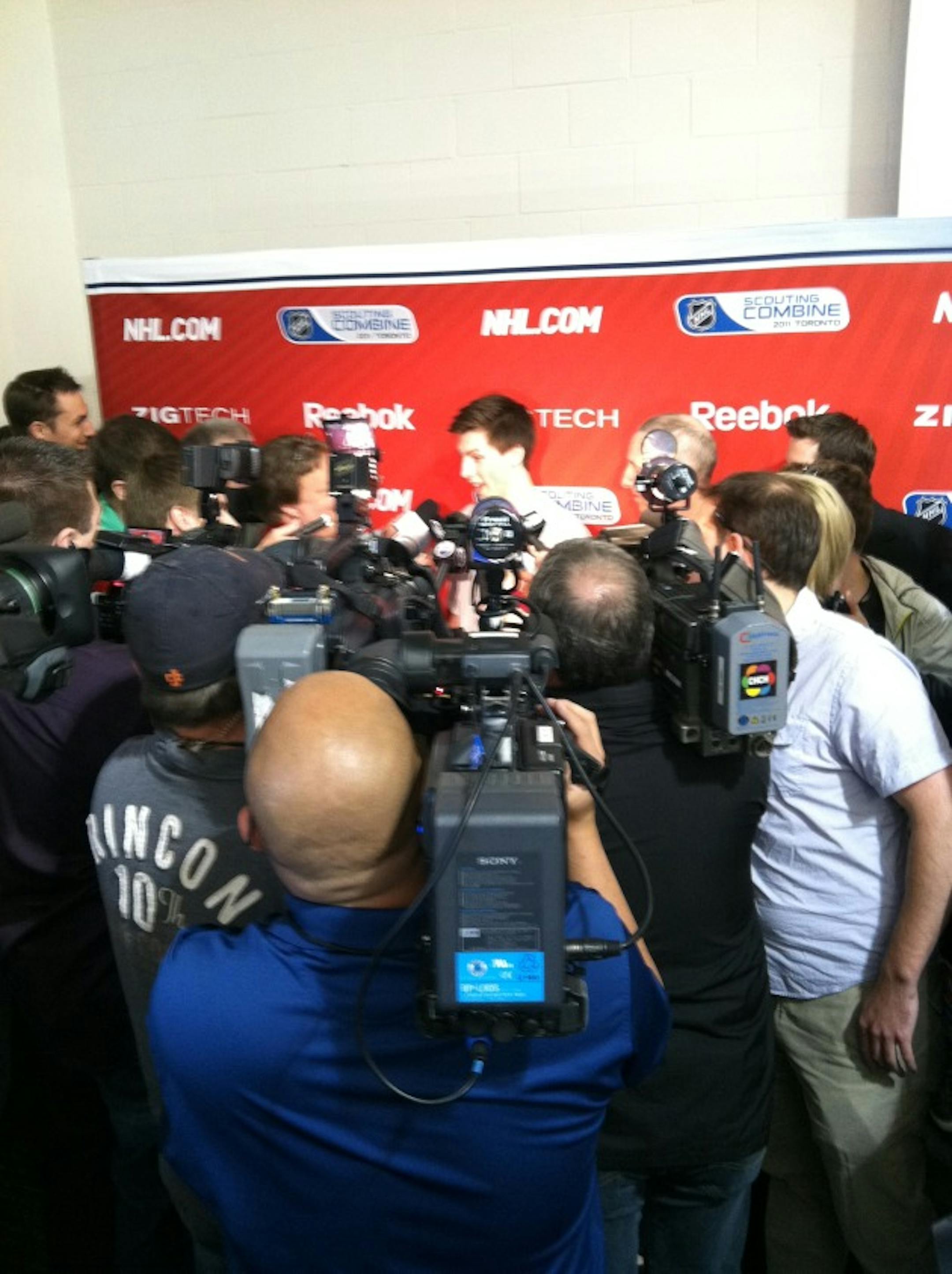 Ryan Nugent-Hopkins, potentially the No. 1 pick in the June 24-25 Draft in St. Paul,. addressing the media after today's fitness testing.