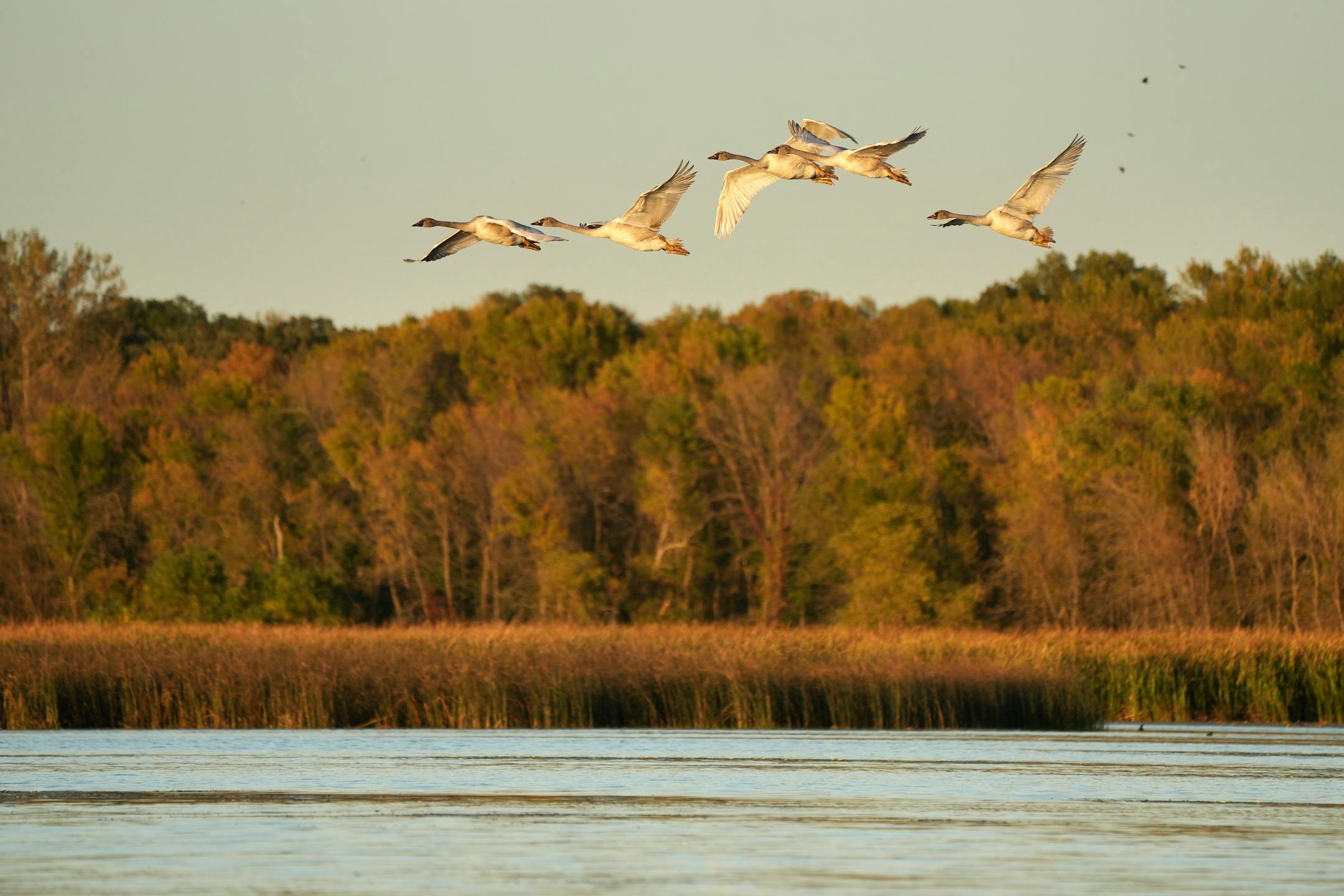 On Swan Lake, thick stands of bulrush and cattails stretch nearly a mile from shore and form narrow channels just wide enough to navigate a canoe. Inside those channels are gaps in the grasses, where wood ducks rest in the soft light of the setting sun until the sound of a paddle in the water flushes them out. The birds fly to open water at the center of the lake, where they join flocks and rafts of thousands of others. There they dive down to gorge on one of the finest caches of wild celery and sago pondweed in North America.