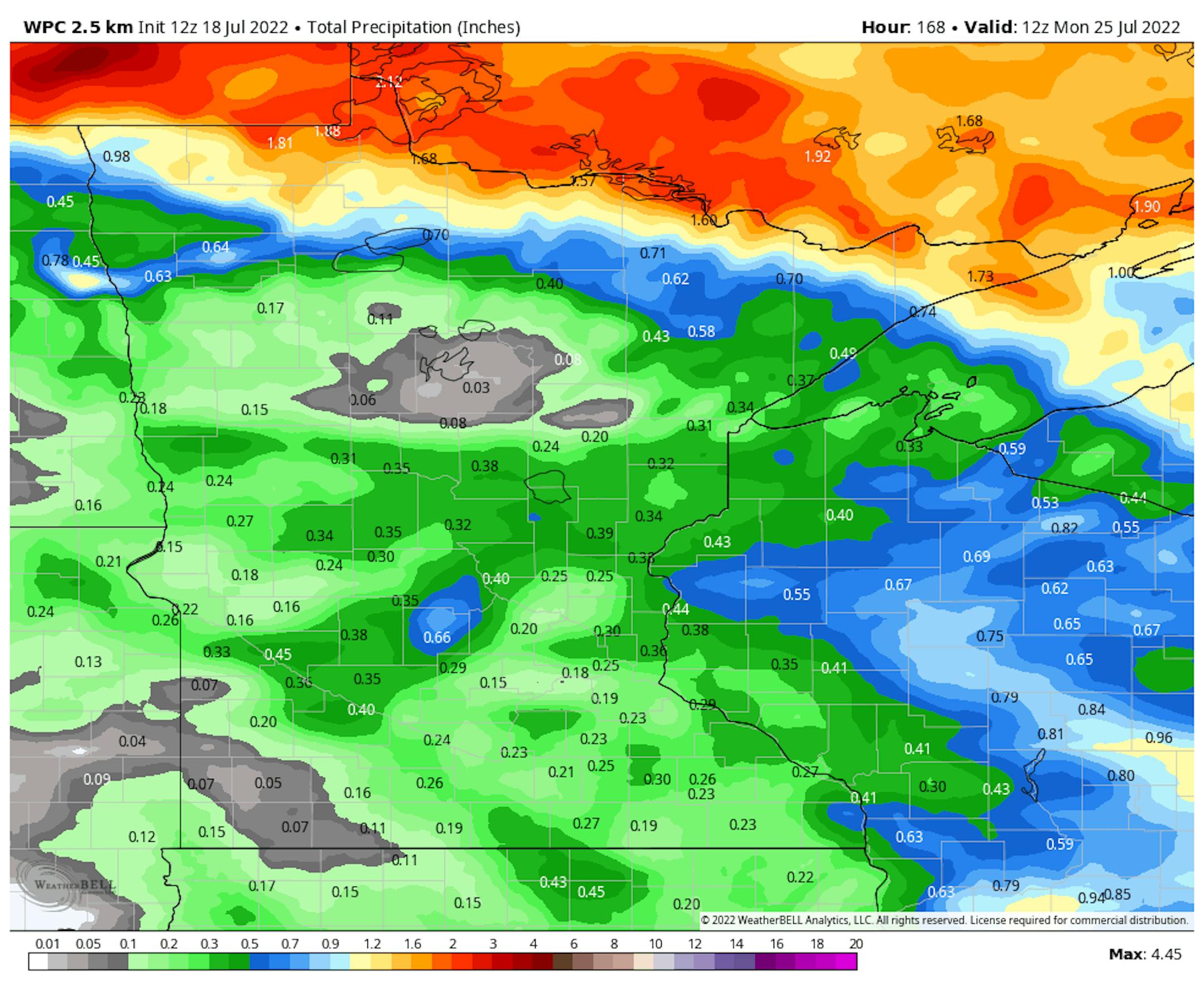 Here's the extended precipitation Outlook through the weekend ahead, which shows heavy rains possible across the international border. The rest of the region looks like they could see spotty rain chances over the next several days, but it won't be too heavy.