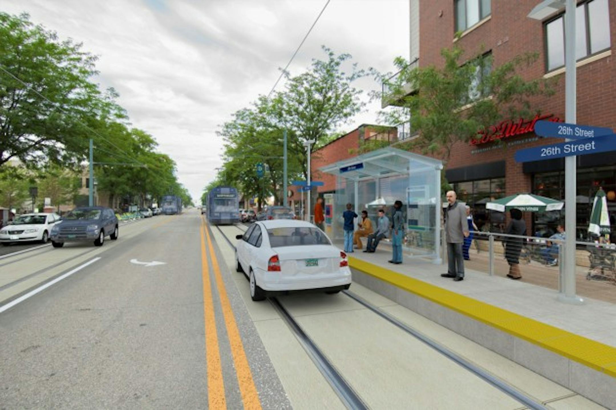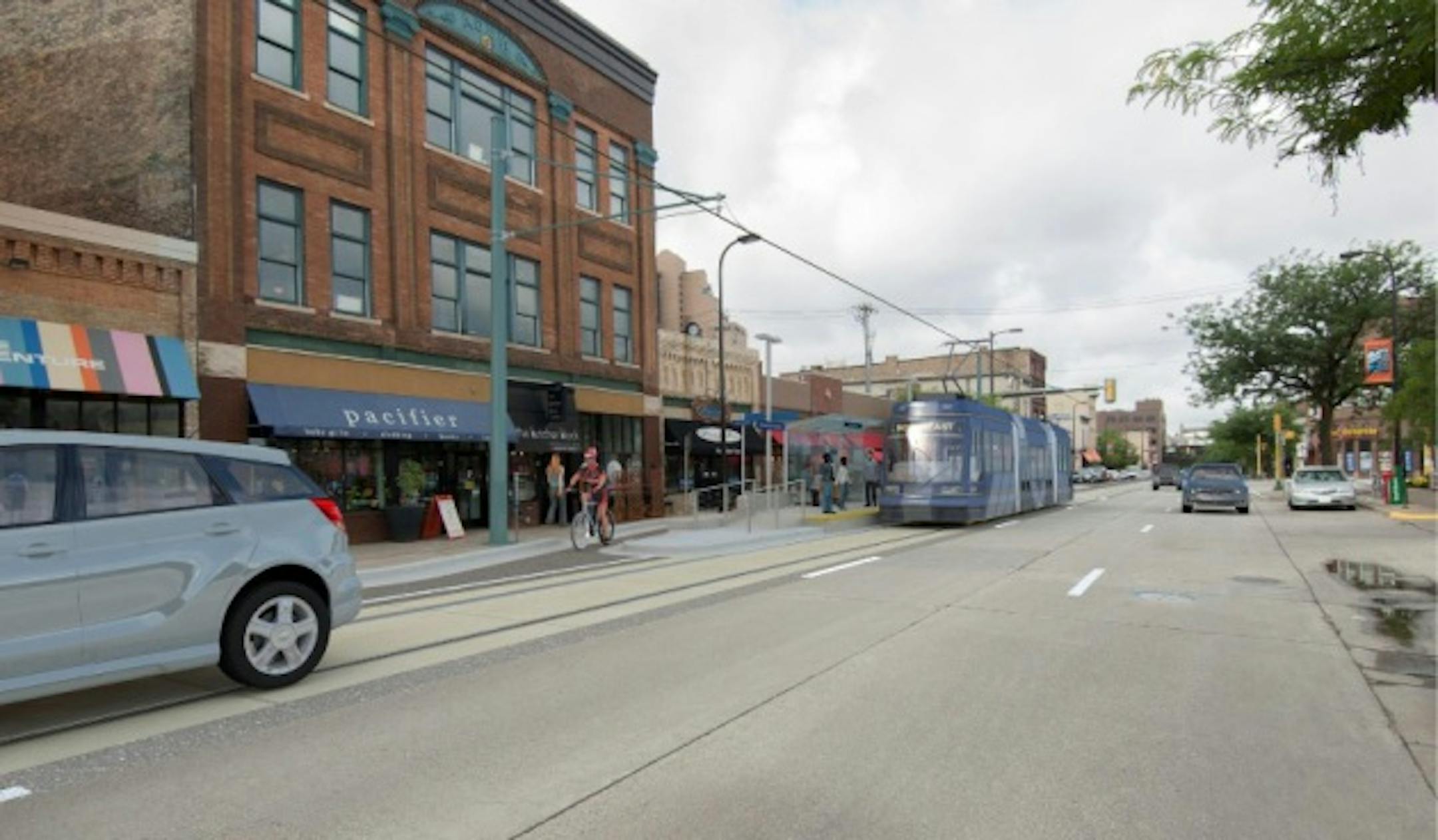 Above: The streetcar running in mixed traffic along Nicollet Avenue (City of Minneapolis)