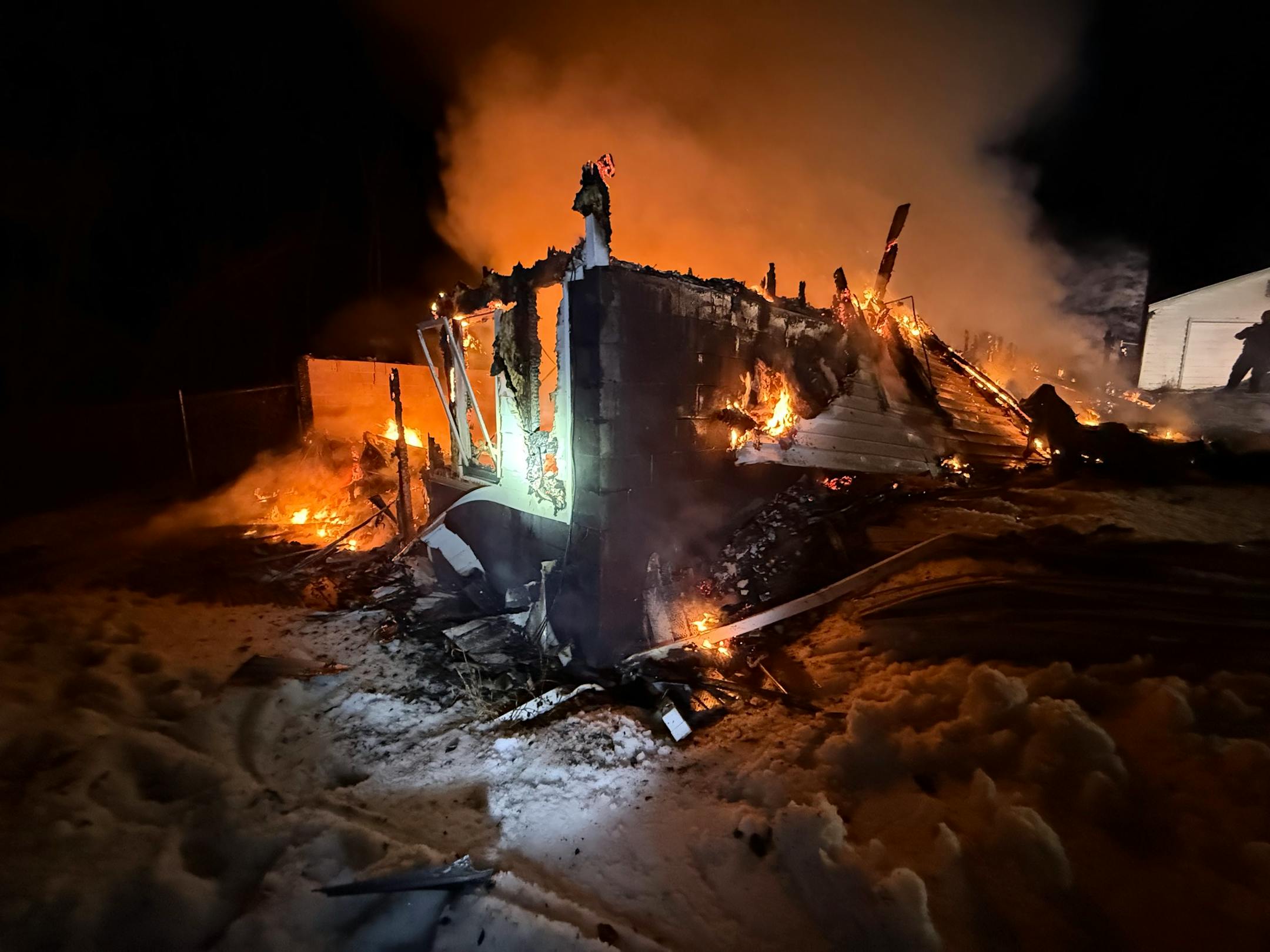 One person was found dead inside a burned and collapsed home near Bemidji on Monday, Feb. 16.