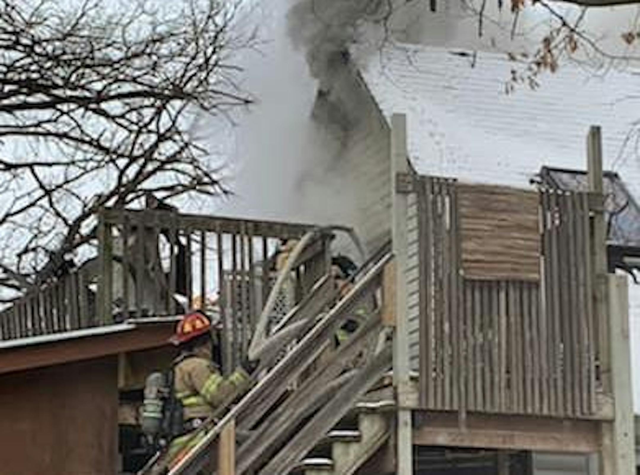Firefighters saw black smoke coming from an upstairs unit in the rear of the building and quickly put out the flames, the Fire Department said.