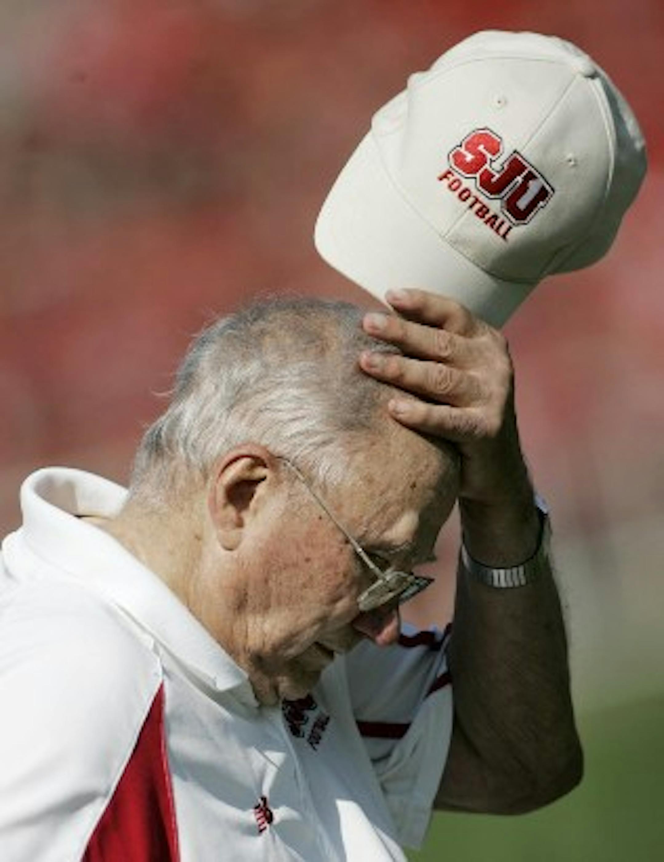 There is considerable panic these days in Collegeville, Minn. Perennial Division III football power St. John's has lost three times this season -- sequentially: a blowout to UW-Eau Claire, a heartbreaker at the gun to Augsburg and this past Saturday's 63-7 shellacking at rival St. Thomas. As happens when a program suddenly struggles, fans are wondering if the head coach is still up to the task. These voices tend to get louder, fair or not, when the head coach -- even a living legend like John Gagliardi -- approaches his 85th birthday (he will turn on Nov. 1). Is Gags overmatched? Here is a voice from the TV Fury web site saying "no way," as pointed out to us by a noted Johnnie alum who played under Gagliardi and goes by Local Quipster on this blog. Here is how the piece ends: