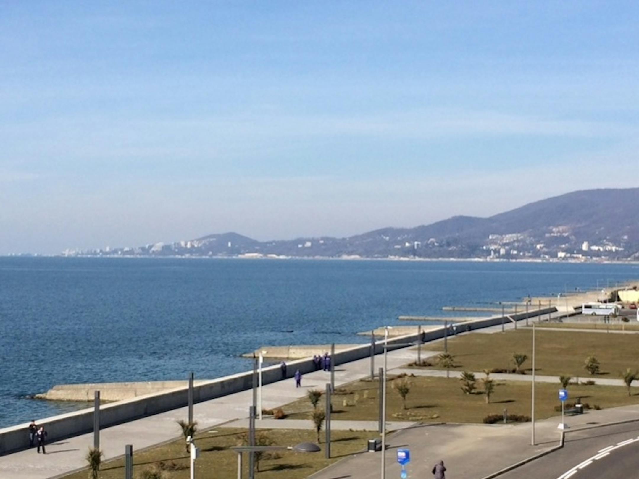 Now, on to the fun stuff. The train station in Adler has a gorgeous balcony overlooking the Black Sea. For the Olympics, they have stationed a large Olympic rings sculpture at the edge. It was swamped Friday by families, couples and pals taking advantage of a great Olympic photo op. From the balcony, you also can look down the coast toward Sochi and get an idea of how long this metro area really is.