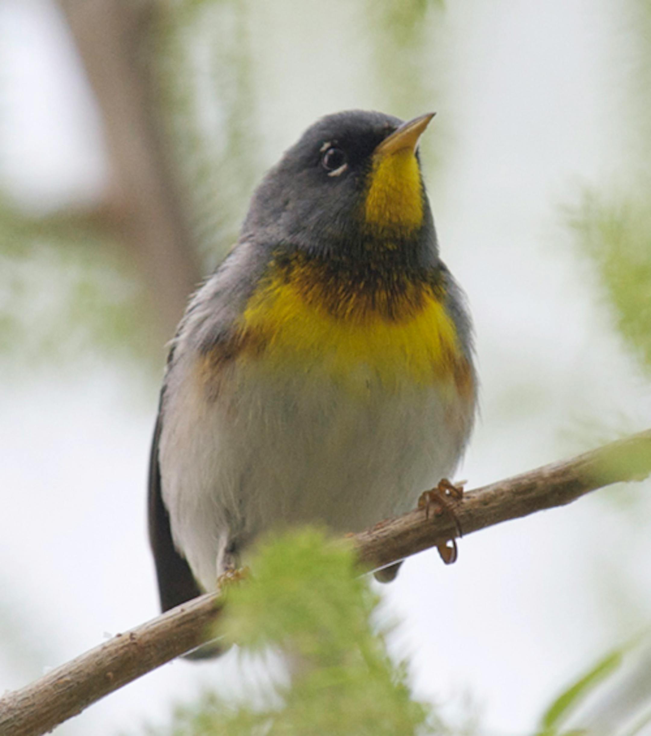 We continue our birding adventures in Ohio, along the Lake Erie shore east of Toledo. Our base of operations is known as Magee Marsh, a wonderful piece of wooded swamp strung through with a winding boardwalk offering excellent views of the migrant birds that land there to feed and rest before flying across the lake. I mentioned yesterday my pleasure with finding a Black-throated Blue Warbler that cooperated in extraordinary fashion for photos. One Black-throated Blue. This morning I heard five different Black-throated Blues singing, all at the same time, all within 50 yards of each other. A southwesterly wind yesterday combined with an overnight thunder storm to fill the woods with birds. The Black-throated males arrived in force, as did Prothonotary Warblers. Parulas also were in the downed flight. The birding today was three or four times as good as the two previous days. I keep getting emails from Twin Cities friends telling me about the wonderful birding there. I hope it continues, at least until we get home. In the meantime, at dawn tomorrow we're back at Magee. Those here who predict bird movement say tomorrow will be much better than today. That would almost make our out-bound drive through Chicago worth while. In the photo is one of the Parulas we saw this morning.