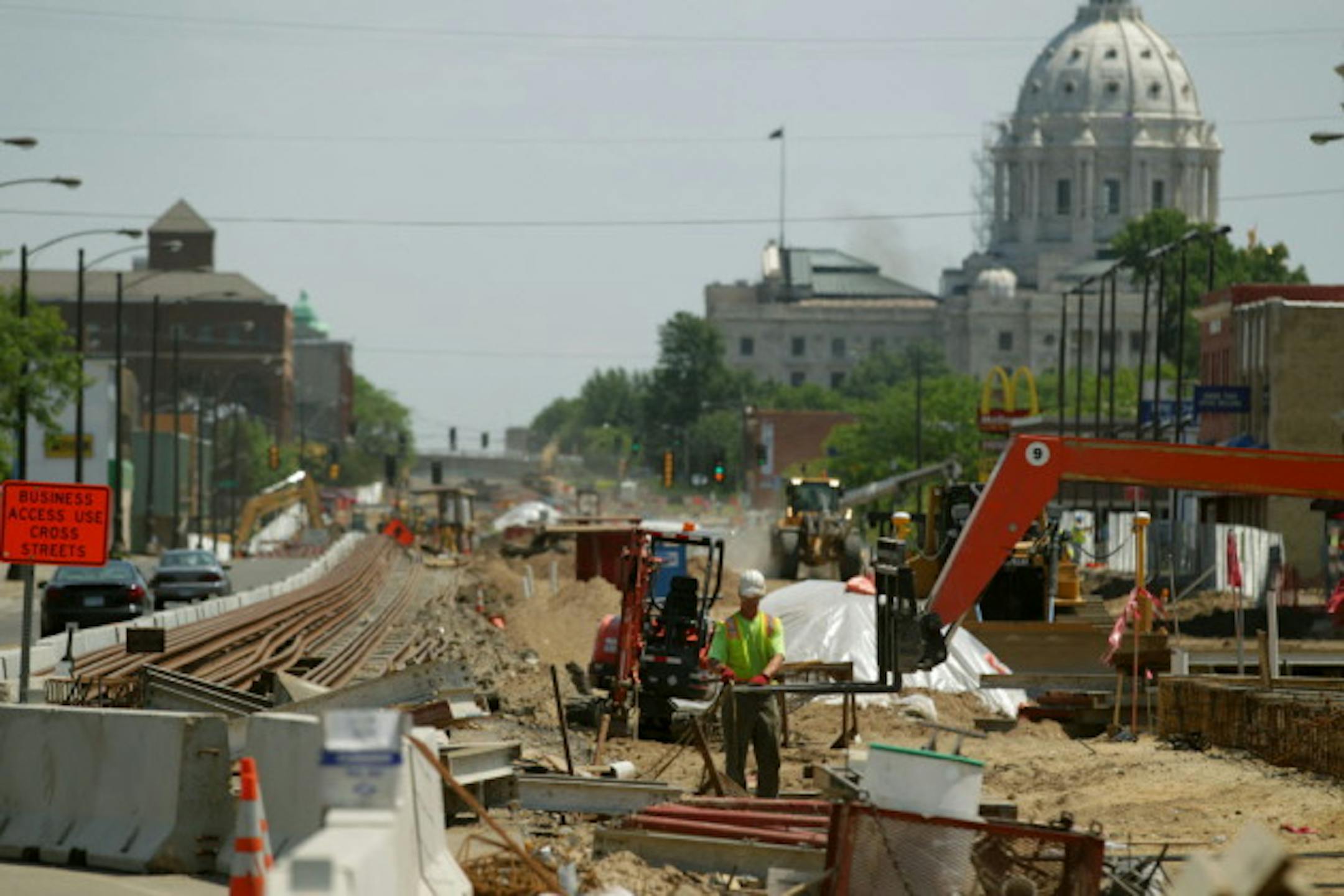 Work on the Central Corridor Light Rail project will bring overnight lane closures near the capitol interchange in downtown St. Paul this week and next.
