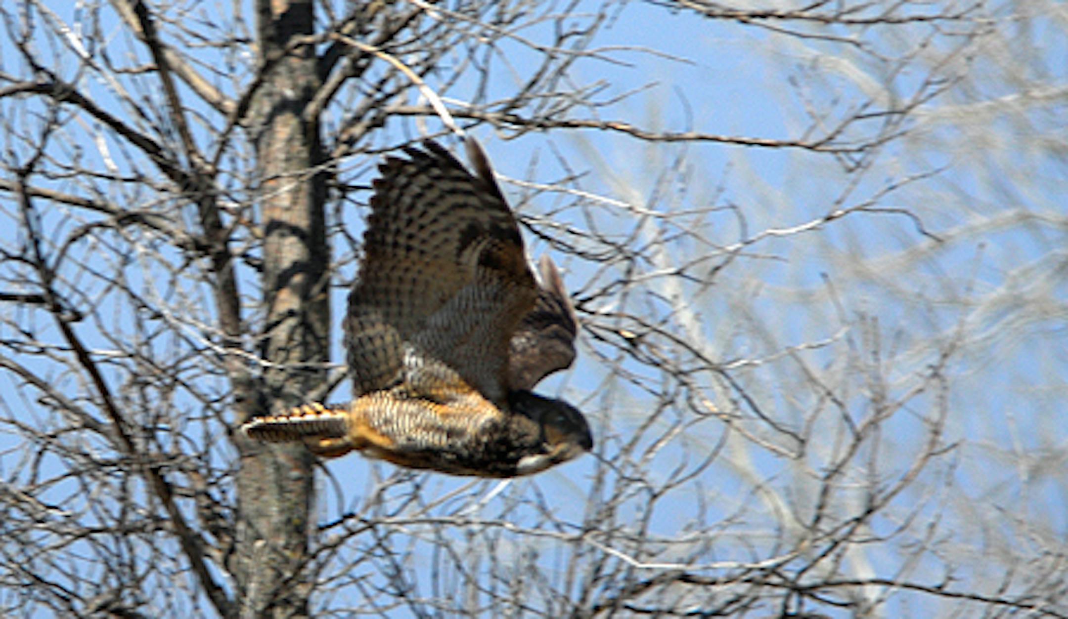 This is the story. A Pomeranian in Quad City, Iowa, weighing about five pounds, ran away from home. Five pounds is rabbit size. The dog was captured by a Great Horned Owl, which then flew away with the it, carrying the pooch about three miles before it lost its grip. The dog fell from the sky (height unknown), and landed in front of someone driving by. That person took the dog to the police who eventually returned it to its owners. The dog was a bit scratched and had a broken tail, but otherwise was unhurt. The dog's owner said the animal was "nervous" upon return. Conversation by members of a birding email list pointed out that large raptors easily can take small pets. A friend of mine, a top-of-the-line birder who knows her owls, was asked if an owl could carry away a 12-pound miniature poodle. That question was posed on a birding email list. "Nope," said my friend. "The owl would eat it right on the ground where it was killed." The Pom, incidentally, is on the lesser end of the weight that owl could carry. The story was first published in the Quad City (Iowa) Gazette. A Great Horned Owl is pictured in flight. Below are Great Horned Owl talons.