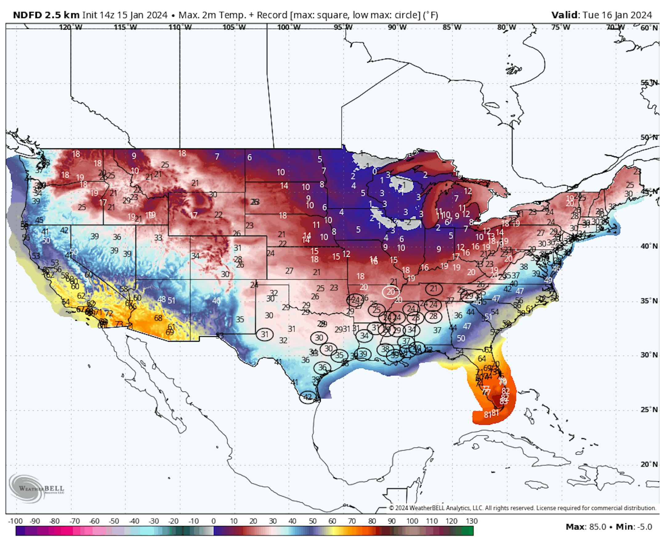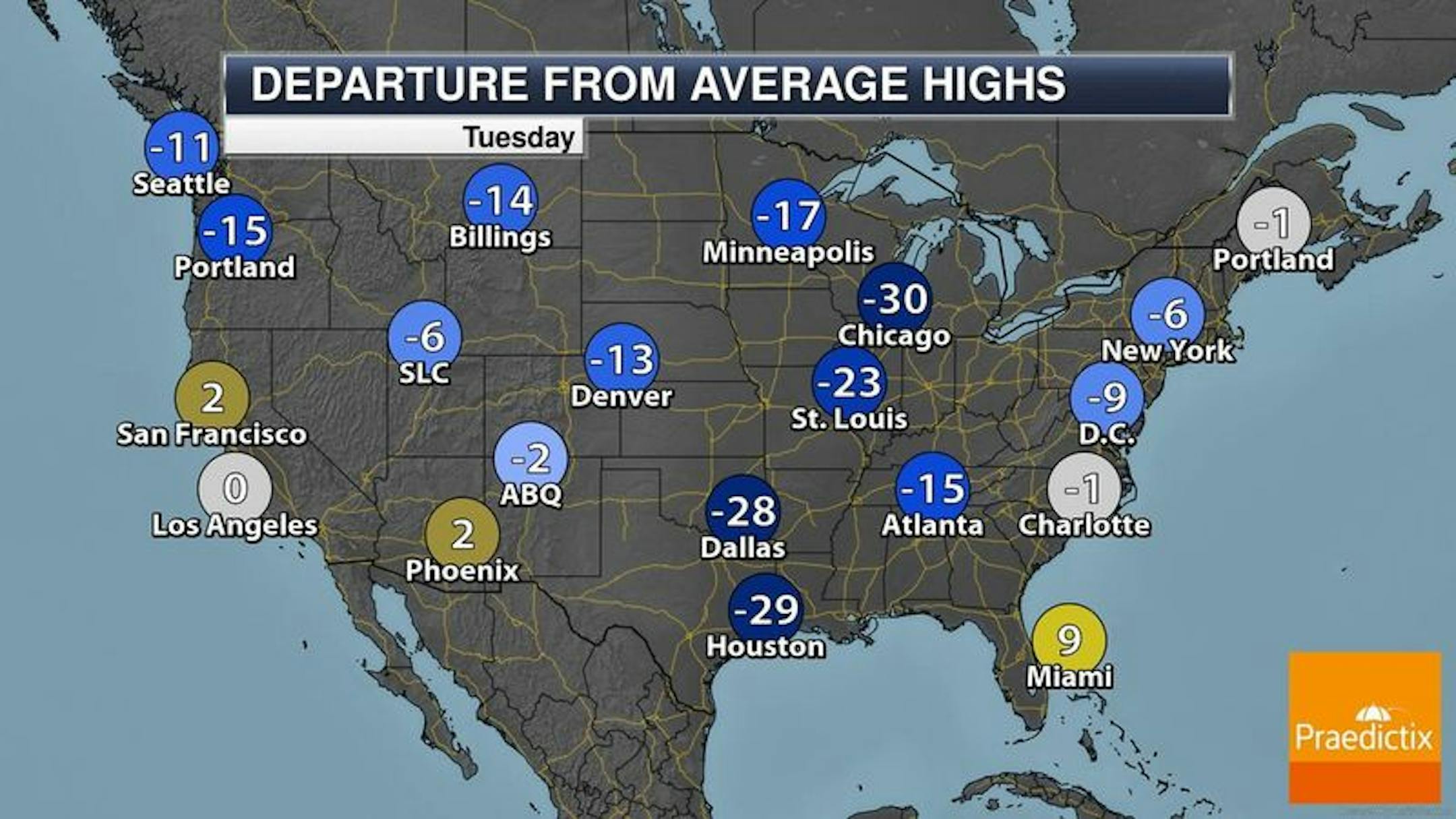 Take a look at the 850mb temp anomaly across the nation as we head through the next 7 days. Some of the coldest air of the season by far will continue across much of the nation with many dealing with subzero wind chill values.