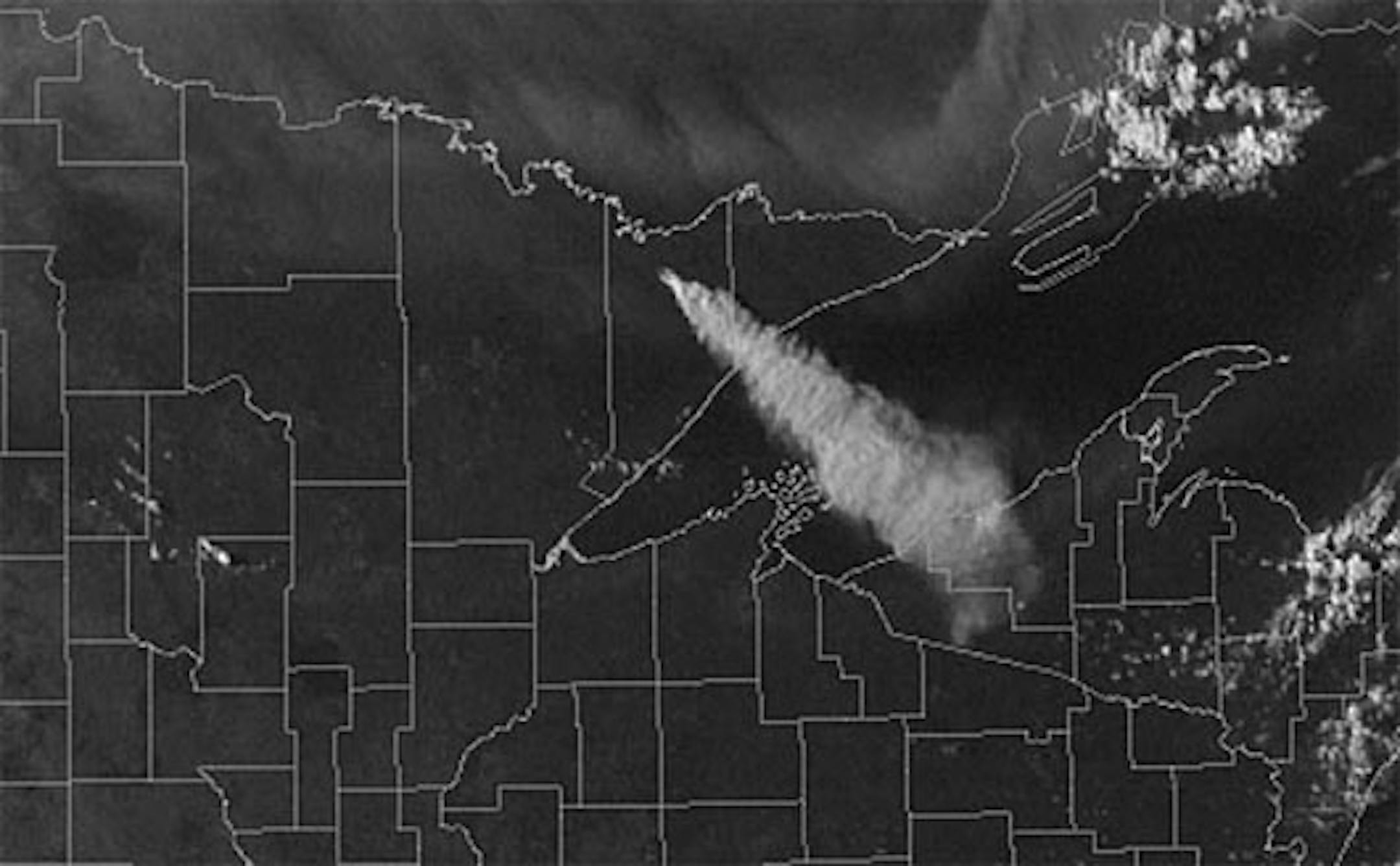 A satellite photo of the wildfire in the BWCA shows its breadth. The National Oceanic and Atmospheric Administration published this on Sept. 13, one day after the fire 'made an unprecedented 16-mile run to the east.