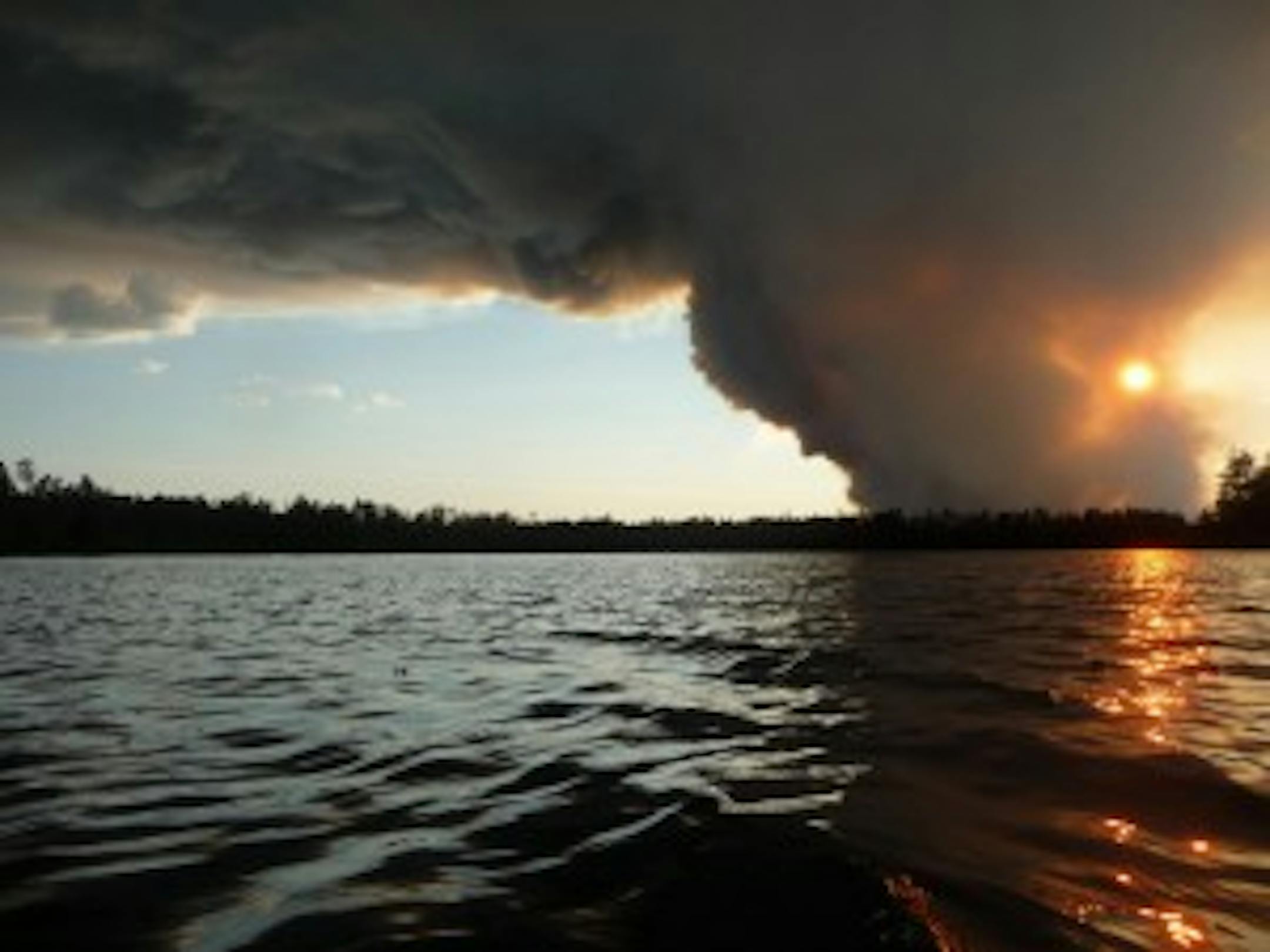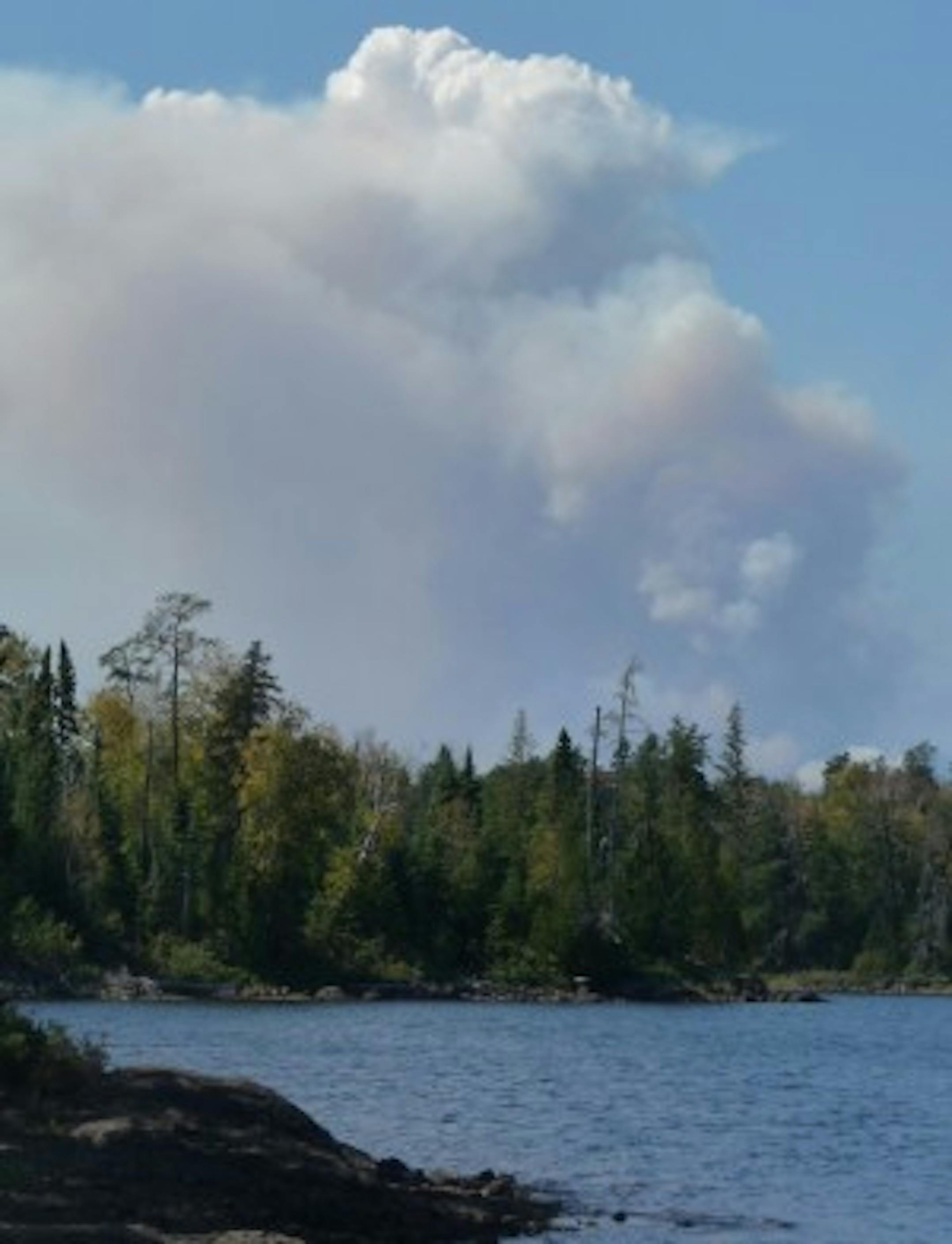 A week ago, I was waking up at my campsite on Lake Insula, in the Boundary Waters. It was going to be another beautiful day, the morning light seemingly soft and quiet. I made coffee and enjoyed the view west across the bay, where an old white pine stood tall over blowdown forest -- mostly scrubby balsam and birch. Several miles behind the pine, a column of smoke rose from the horizon.