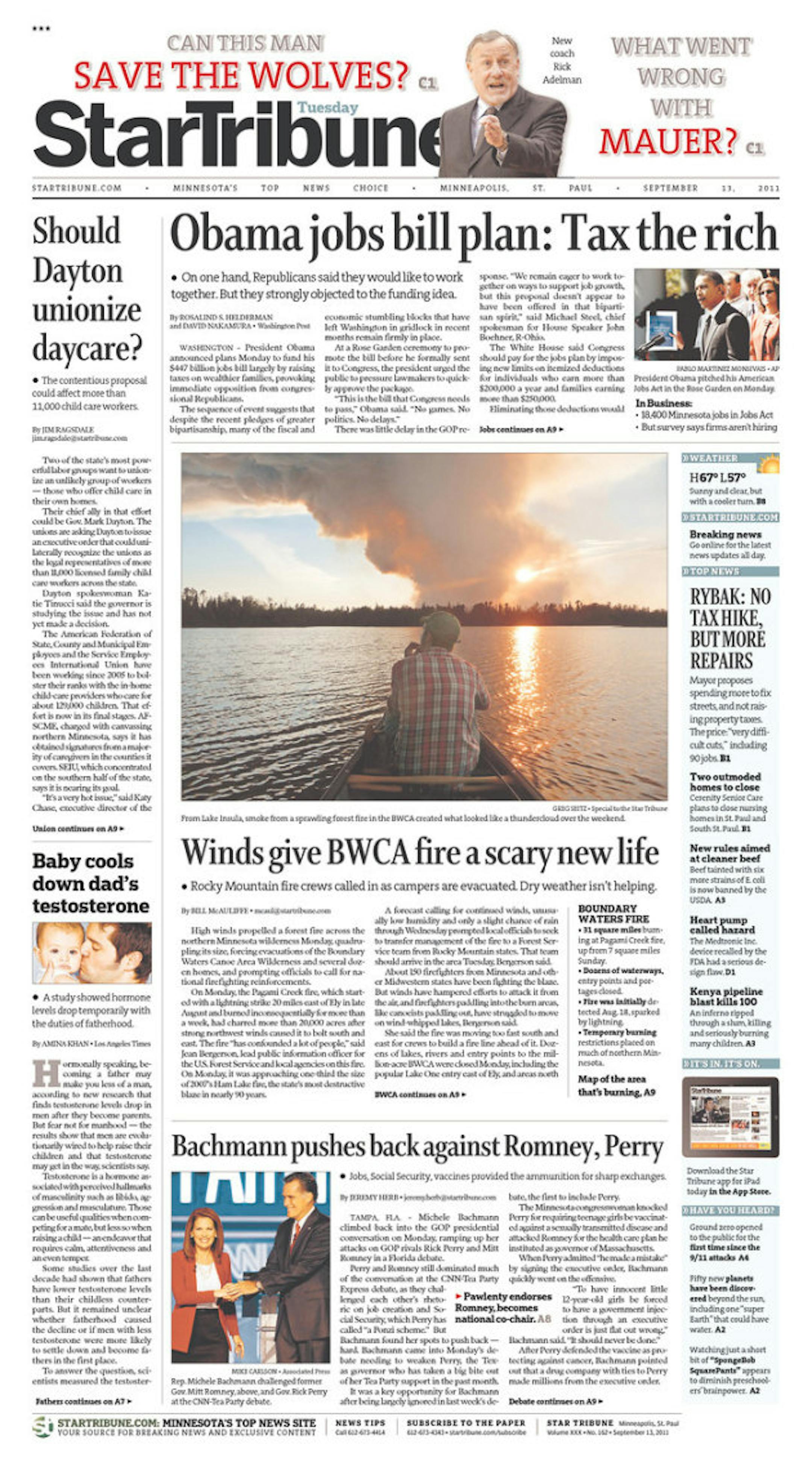 Ultimately, in addition to the Star Tribune, the pictures showed up on MPR's homepage, on KARE 11's broadcasts, on KTTC in Rochester, and even the Door County Daily News, where smoke from the fire was noticeable hundreds of miles away.