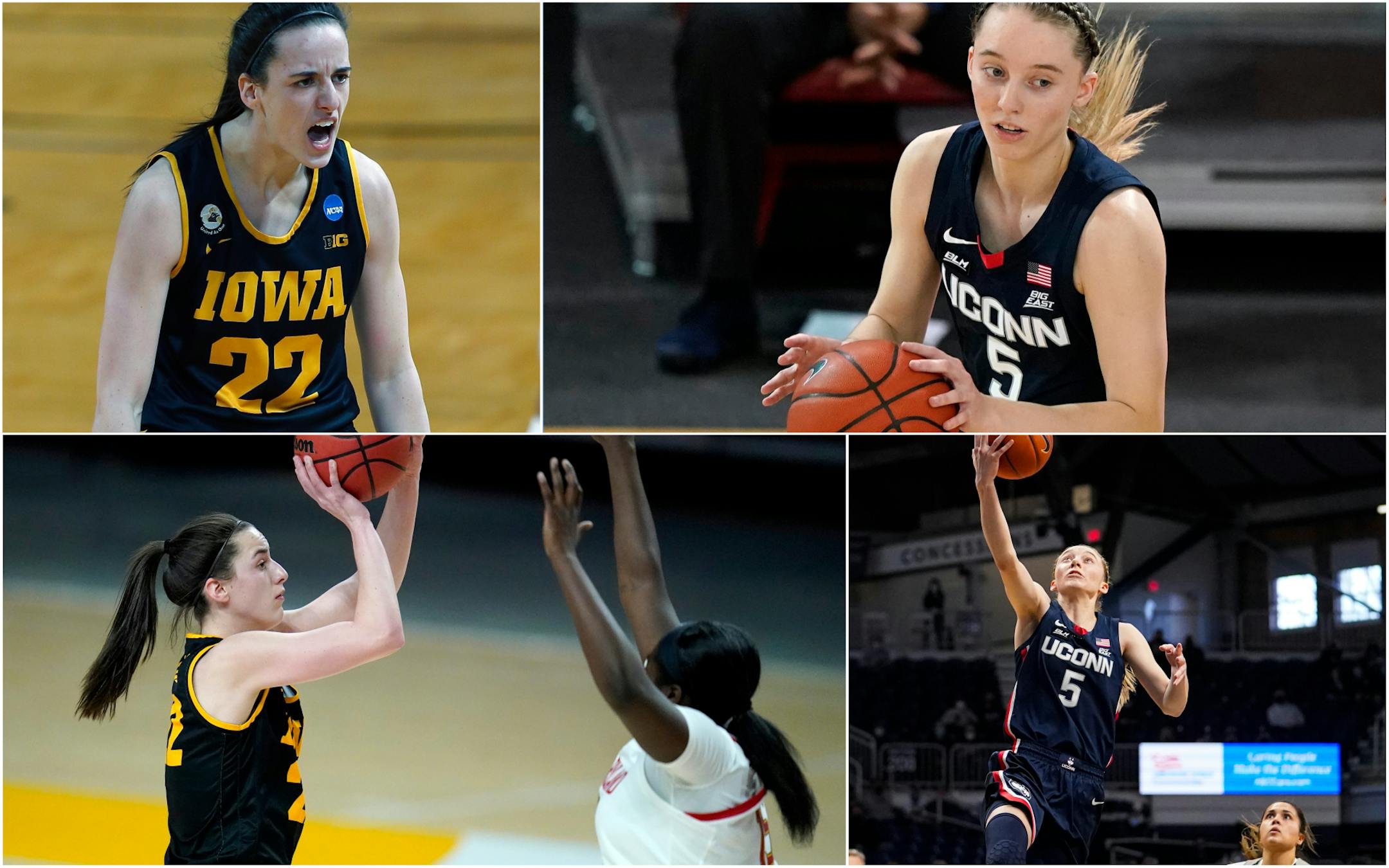 Saturday's battle between freshmen point guards Paige Bueckers of Connecticut and Caitlin Clark of Iowa is the biggest story on a busy weekend for college basketball.