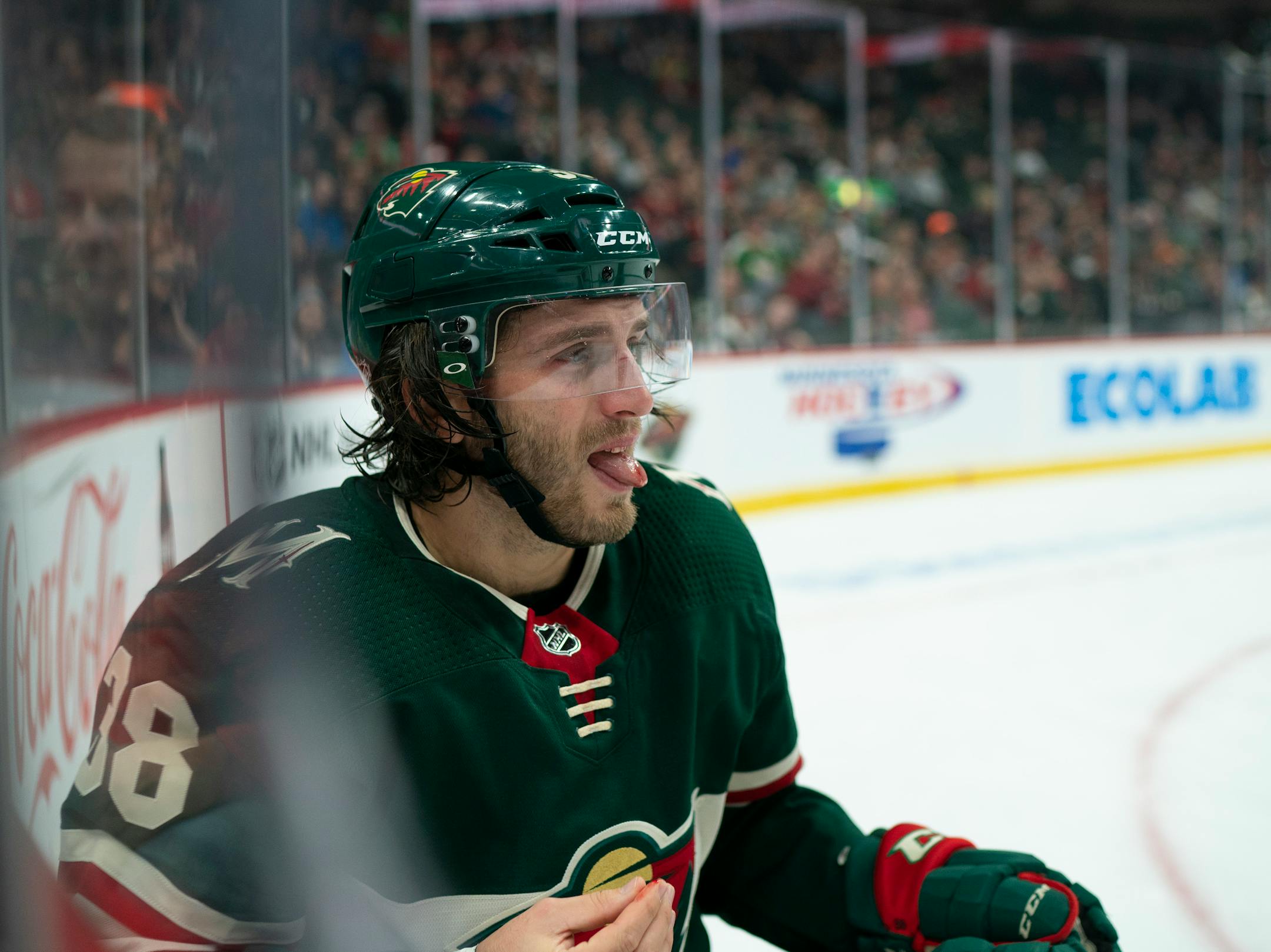 When he finally got up, with a smattering of blood in his wake, the Wild center left the ice as his teammates searched for the enamel shrapnel.
