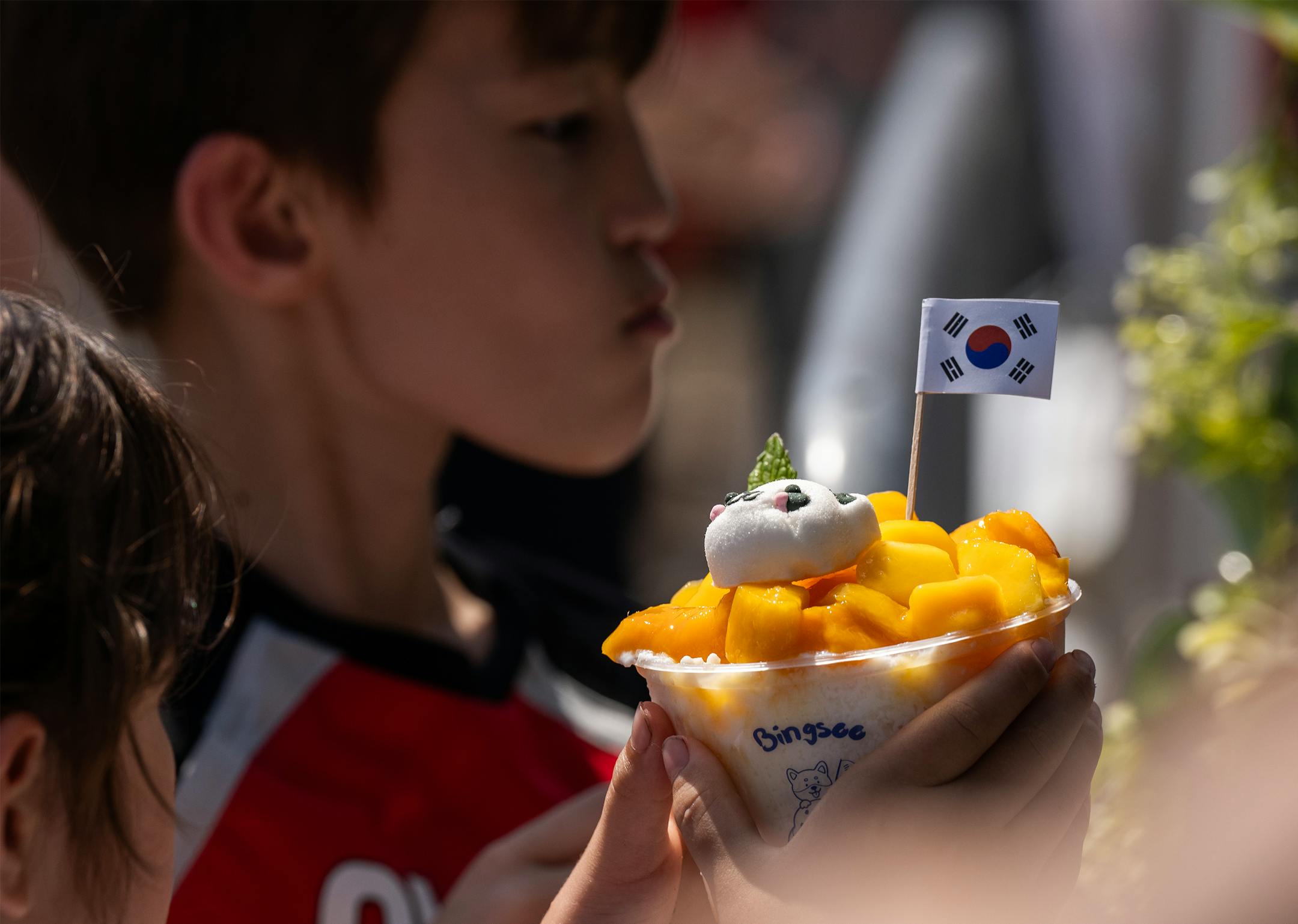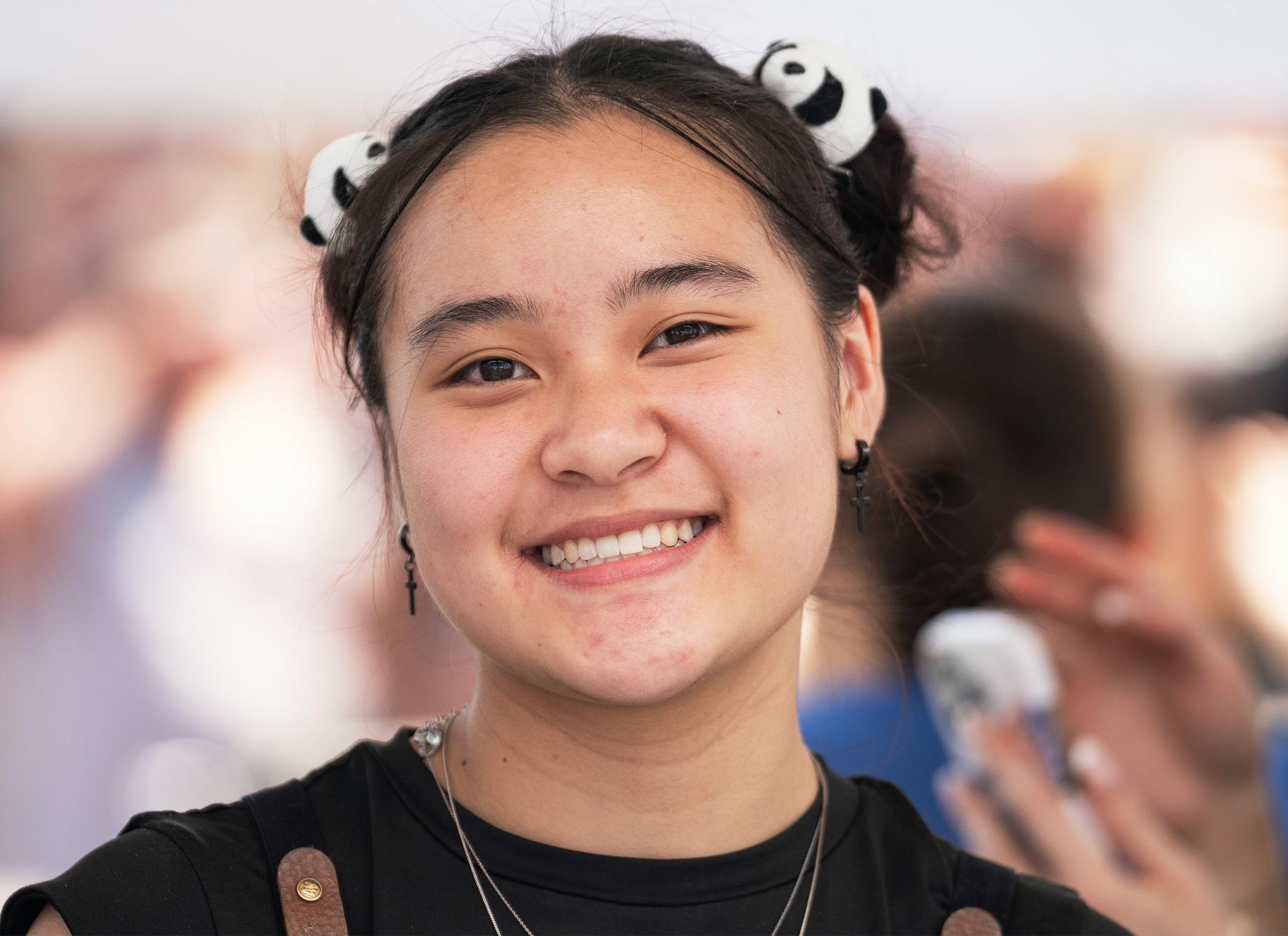 A sea of visitors — many in panda-shaped headbands — packed the north parking lot to sample dumplings, Korean shaved ice, boba tea and seasoned squid on a stick.