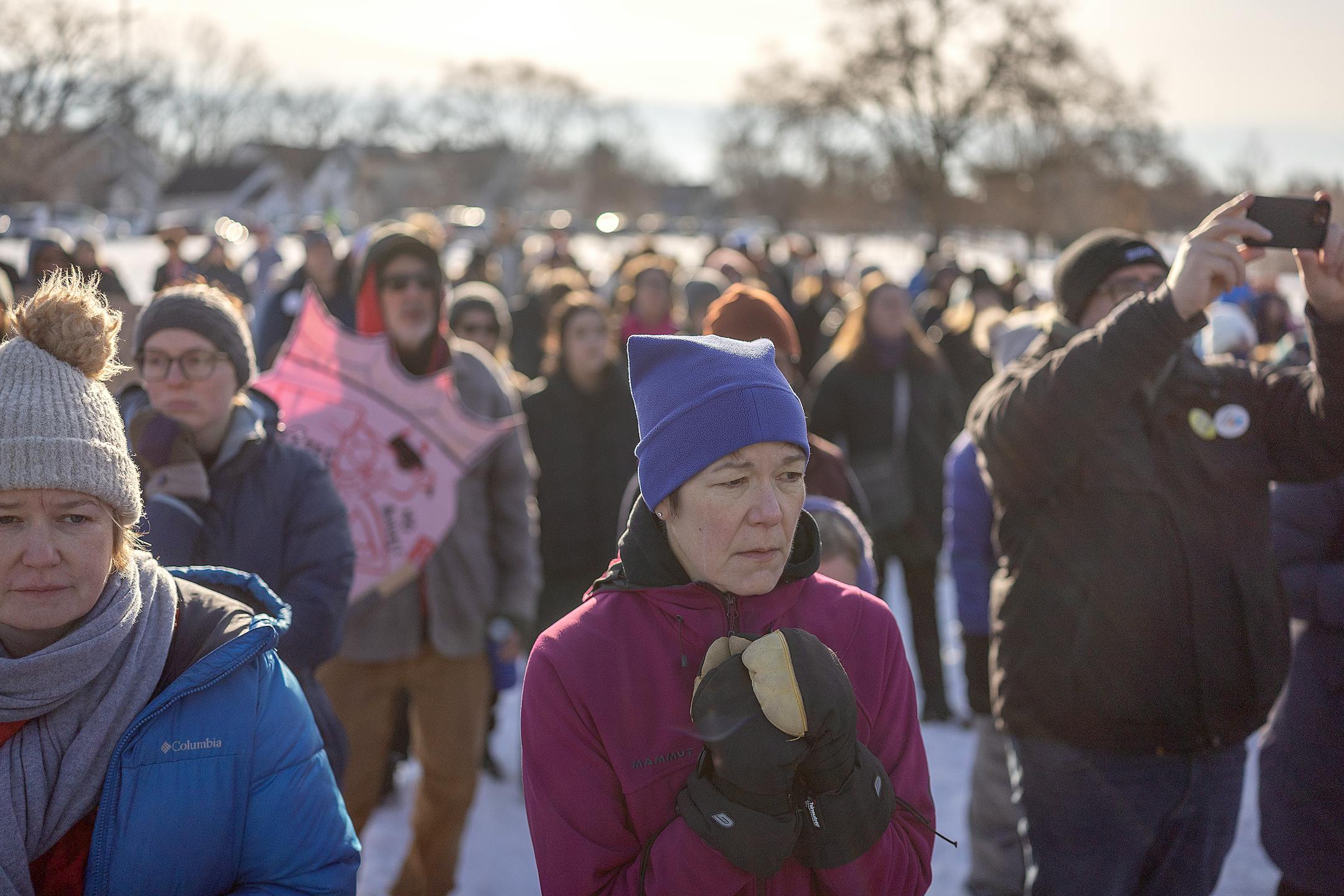 Natasha Dockter, vice president of the teacher chapter of the Minneapolis Federation of Educators, implored people to join in, “get a whistle, wear it at all times and get plugged into the rapid-response network in your neighborhood.”