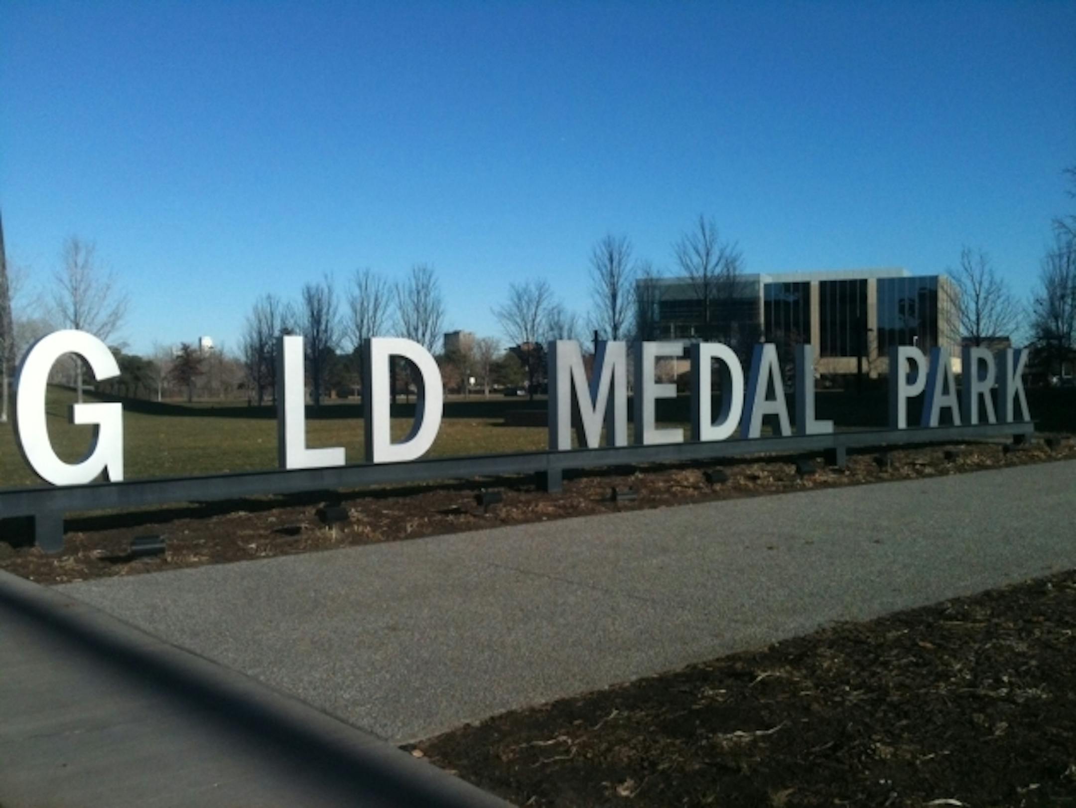 If you've gone past the Gold Medal Park sign recently, you've probably noticed that it's missing something.