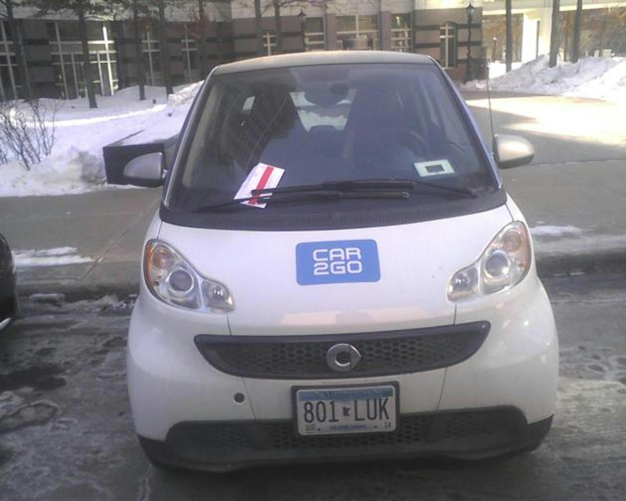 In fact, it will cost you as a recent user of the car sharing service Car2Go found out. The user backed the tiny Smart Fourtwo Passion in an open space in between to two legally parallel-parked vehicles and left the front wheels facing out toward 7th Street across from Hennepin County Government Center.