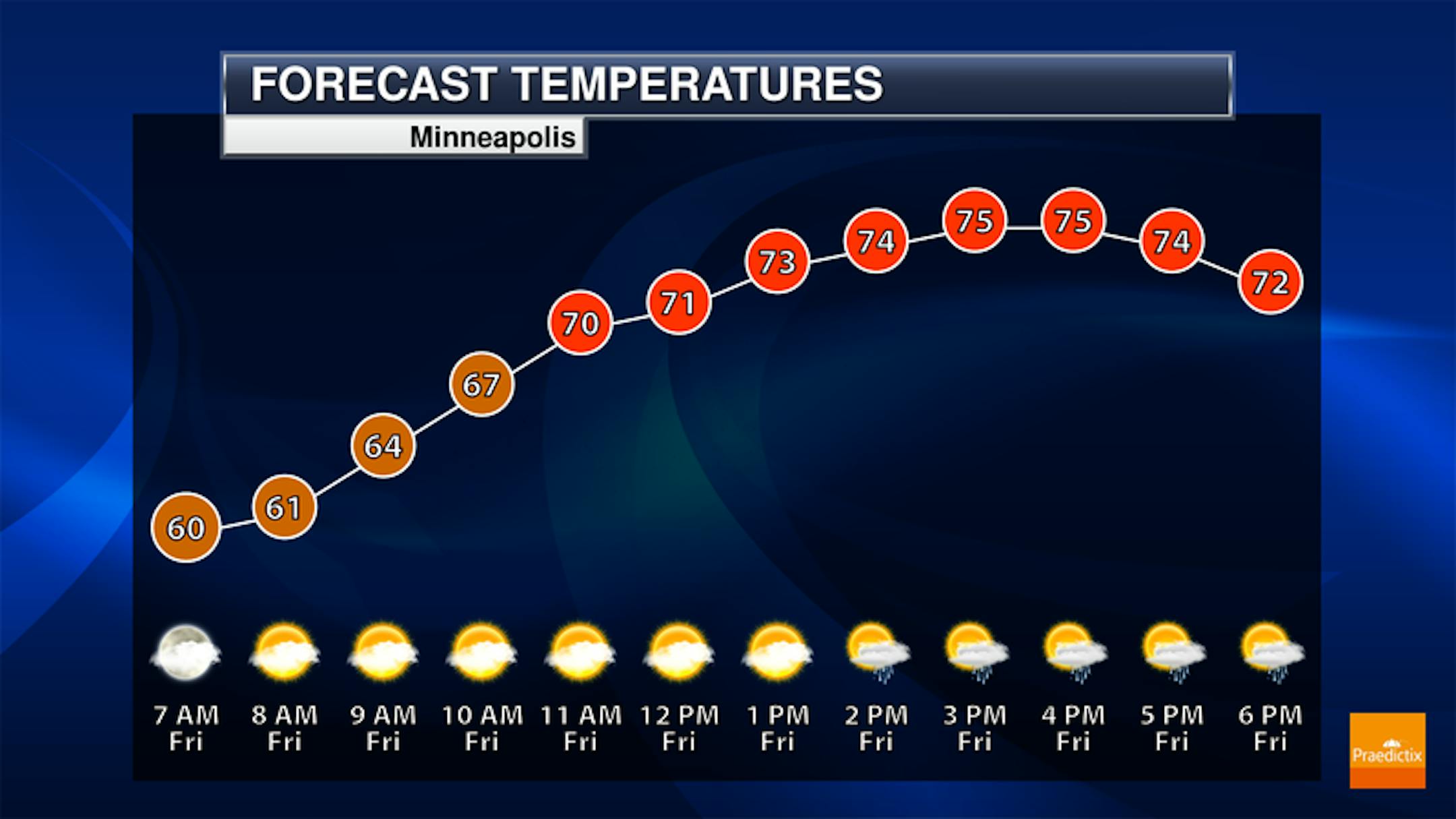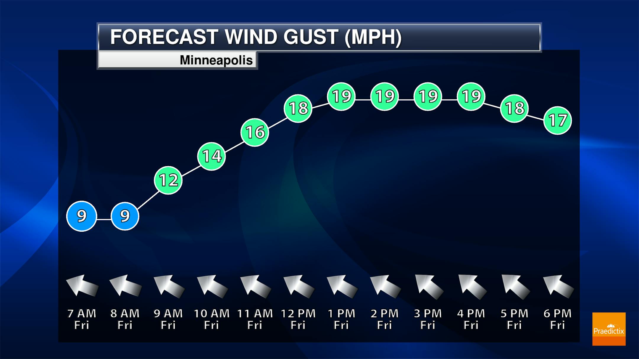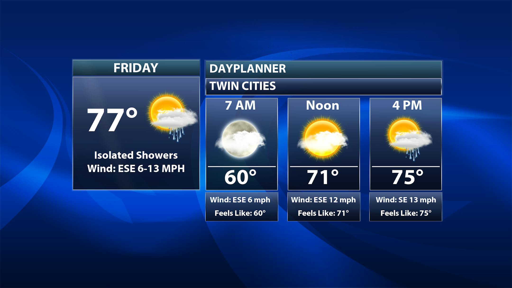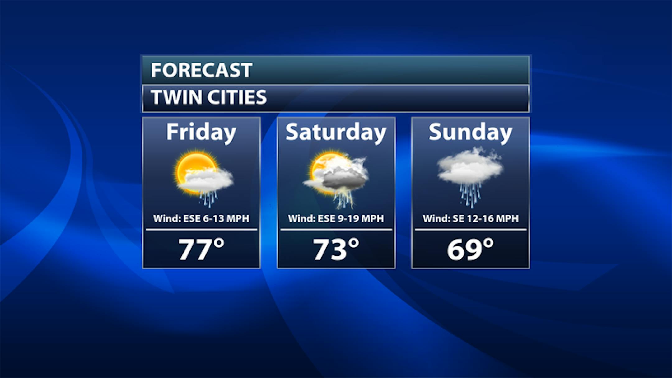 According to NOAA's Storm Prediction Center, there is a Marginal Risk of severe weather across the southern half of the state, including the Twin Cities. The far southwest corner of the state is under a Slight Risk, which is a level 2 out of 5 on the severe scale. Within both of these severe risk areas, large hail and damaging winds will be possible along with locally heavy rainfall.