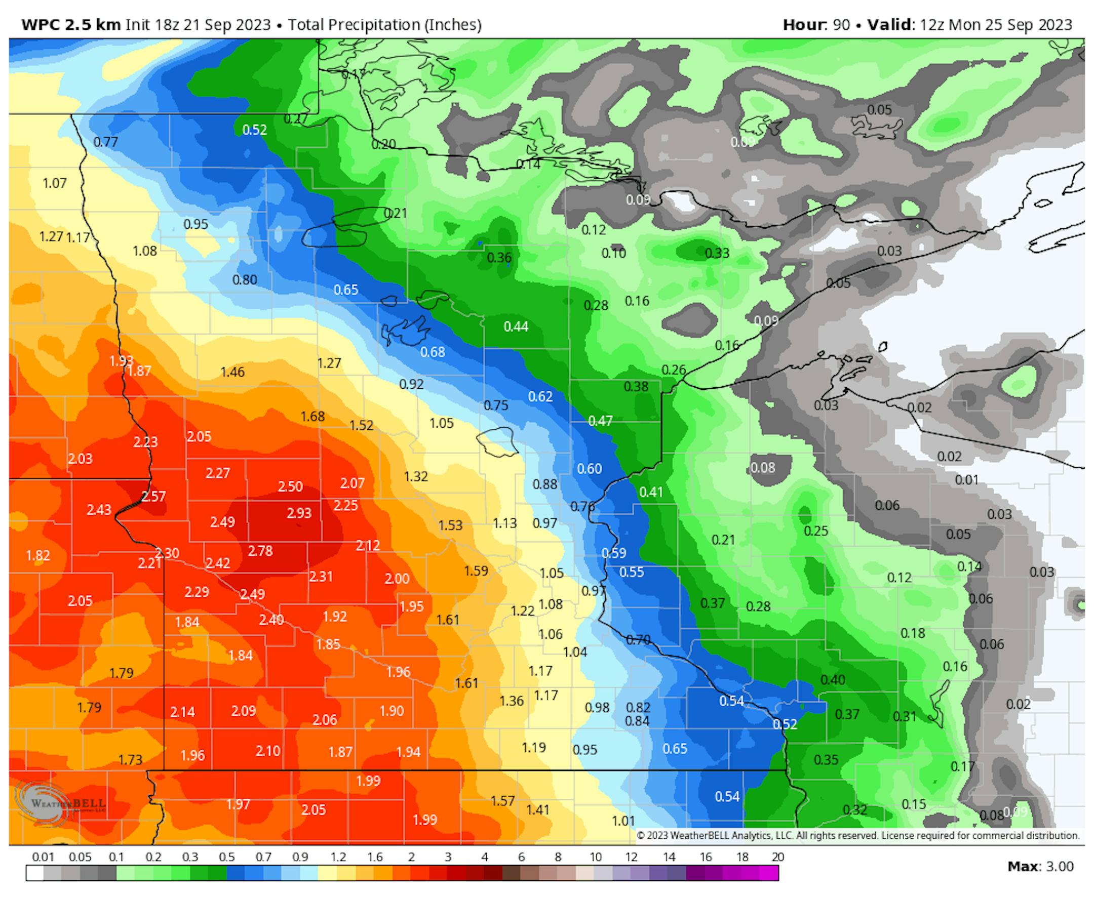 According to NOAA's Weather Prediction Center, there could be some 1" to 2" rainfall tallies across parts of Western and Southwestern Minnesota. Much of the state is well below average precipitation, so it would be nice to get a good soaking.