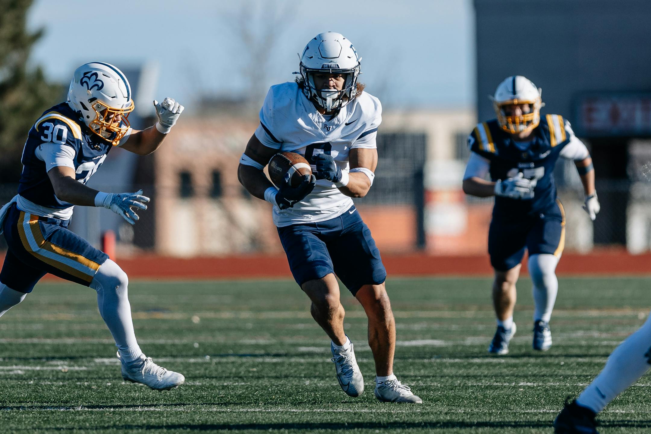 The Johnnies never reached the end zone. Trey Manns, the fast and powerful freshman from Duluth, gave Bethel a 17-10 lead with a 23-yard TD run in the fourth.