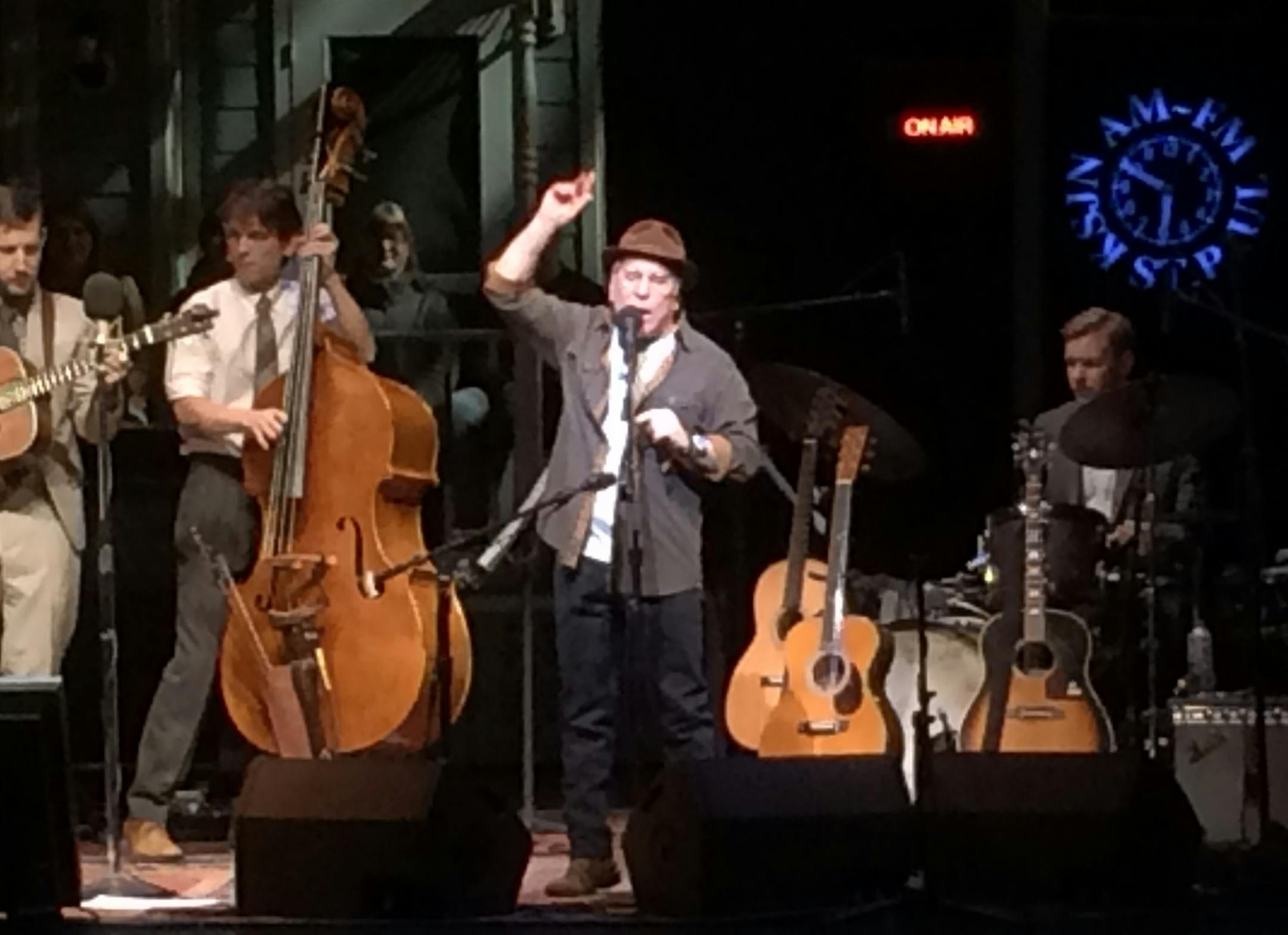 When the two-hour broadcast was over, a stoked Thile coaxed Simon into an encore for the Fitzgerald crowd. "This is as unrehearsed as the rest of the stuff," said Simon, casually dressed in jeans, an open shirt over a T-shirt and a fedora. The ensemble treated the crowd to "Me and Julio Down by the Schoolyard."