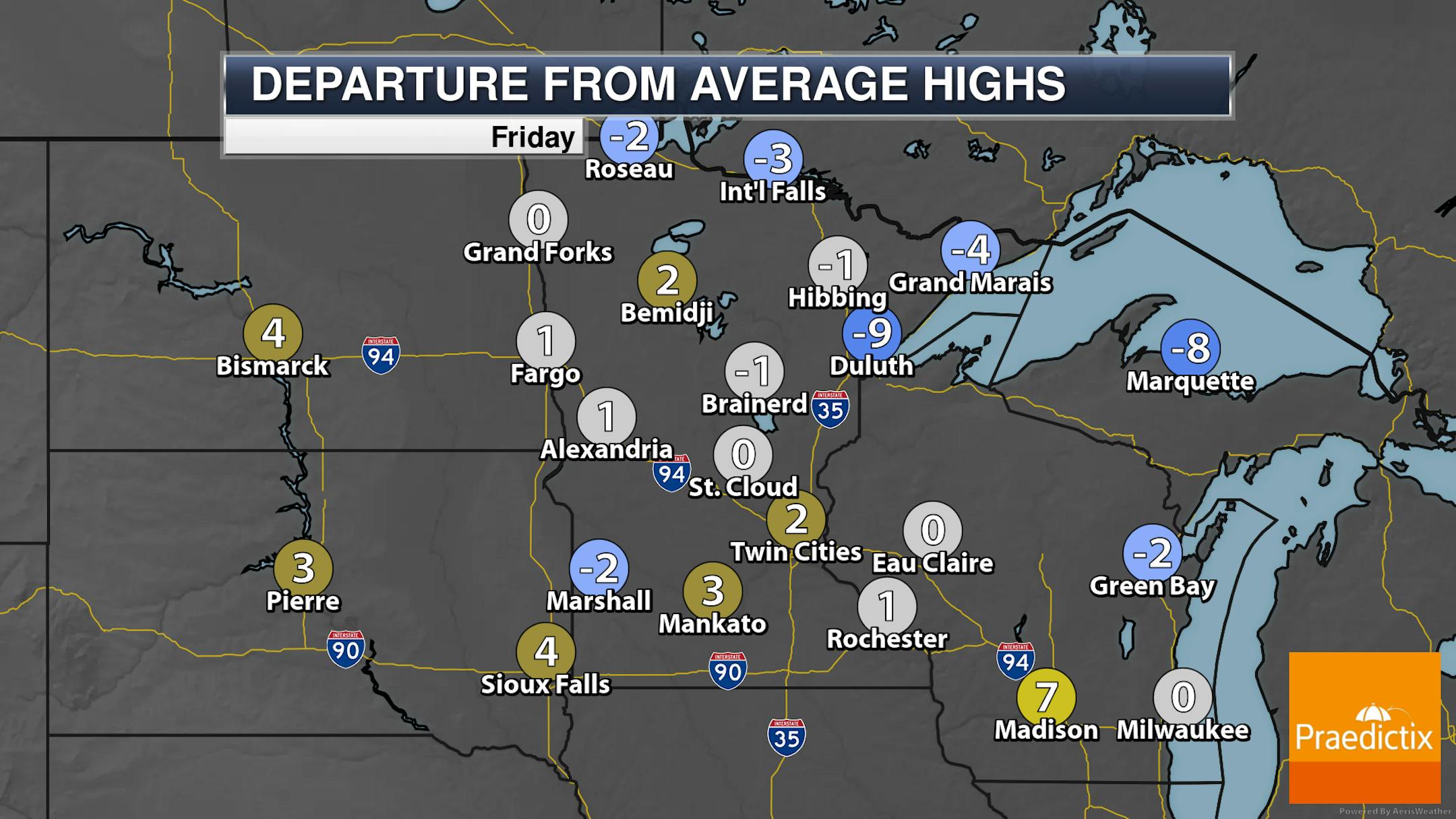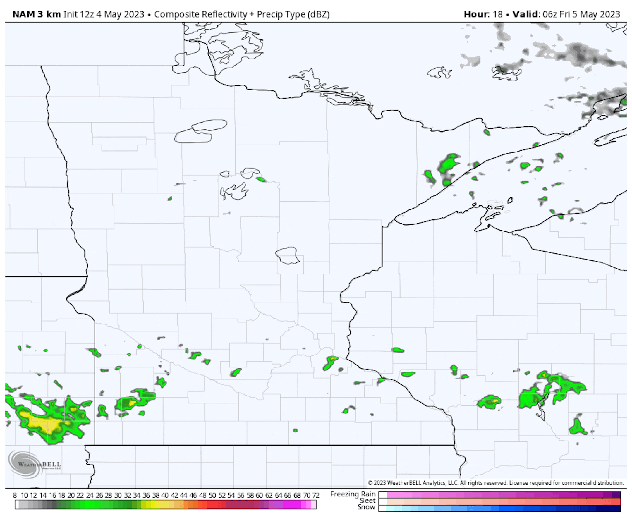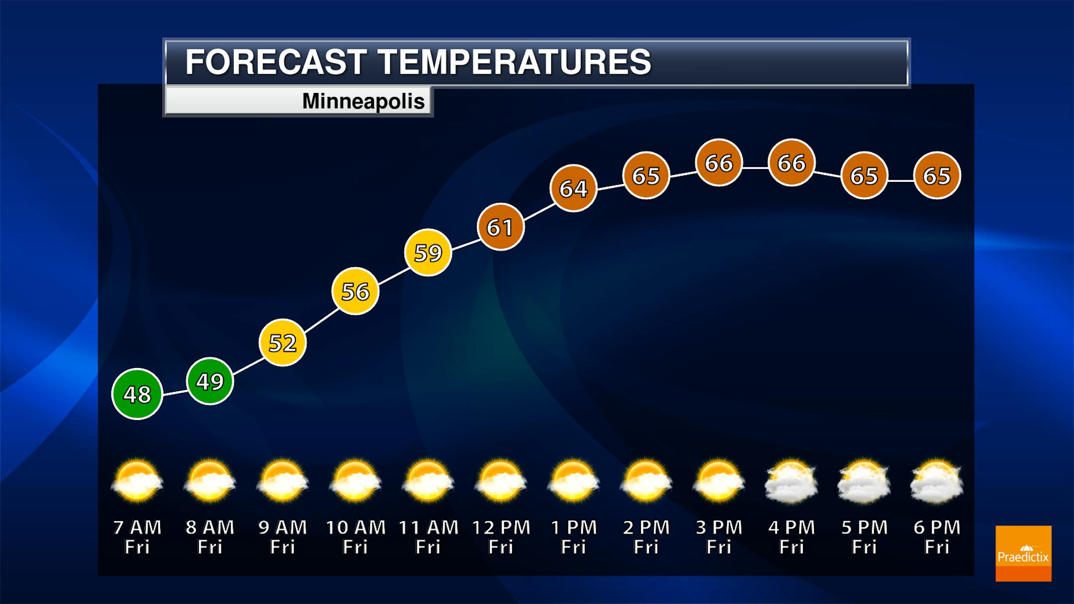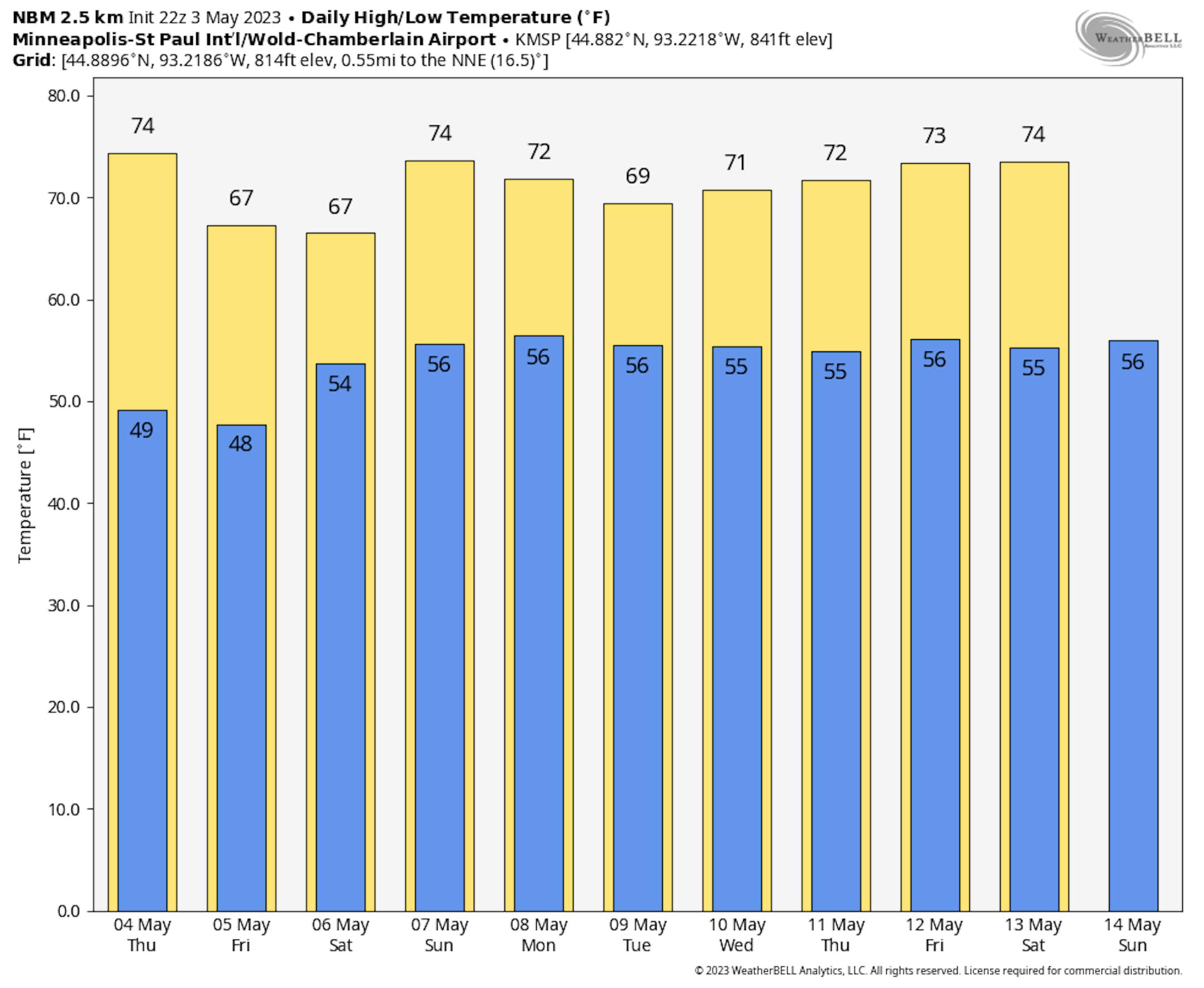 We will watch some scattered showers across the state on Friday, with better chances late in the day across southern Minnesota. Highs range from the 40s and 50s along the North Shore and in the Arrowhead (due to breezy winds off of Lake Superior) to near 70F in southern Minnesota.