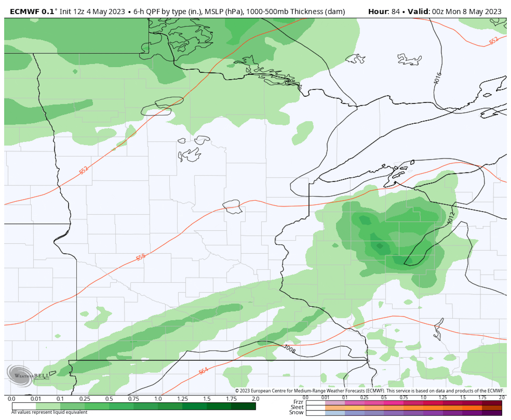 Total Rain Expected Through 7 AM Monday