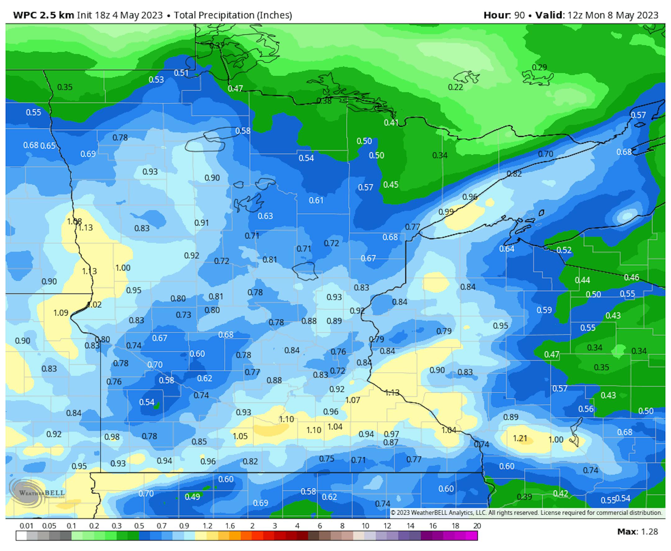 Across a good portion of the state, at least half an inch of rain could fall through the weekend. The best chances of seeing at least an inch will be across portions of western and southern Minnesota and along the North Shore.