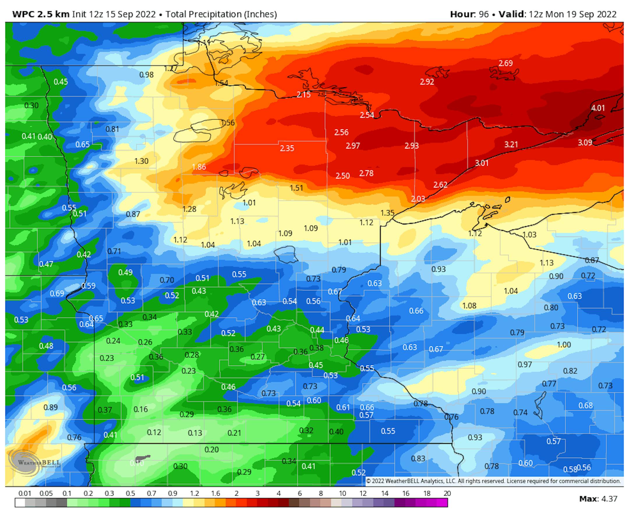 The heaviest rain the next several days will be up across northern Minnesota, where rainfall amounts could top 3" for some locations. This will lead to the potential of flash flooding - particularly through Friday - up across the Arrowhead. Down toward the Metro, a generalized quarter to half an inch can be expected with some isolated 1" amounts.