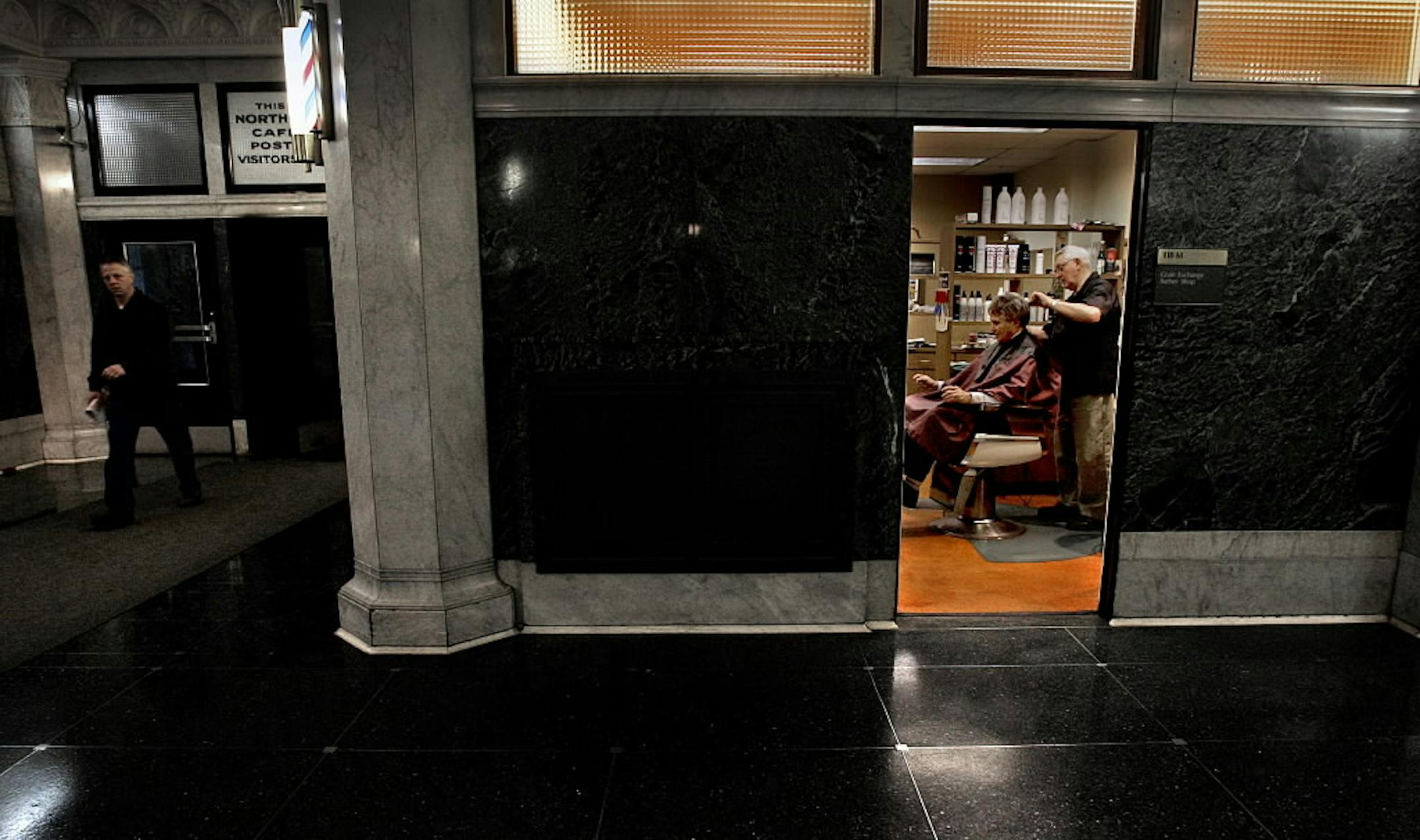 Peter Berglund found his way to Leo Odden's brown vinyl chair in 1974 and has been sitting down for a trim once a month since.