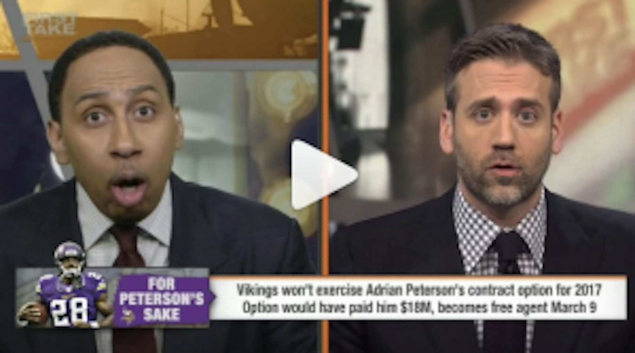 The hot take that got things brewing: Co-host Max Kellerman called Adrian Peterson, the former Vikings running back who is now a free agent, a "souped-up Frank Gore." He tried to walk it back a little by clarifying that he meant it at this point of Peterson's career.