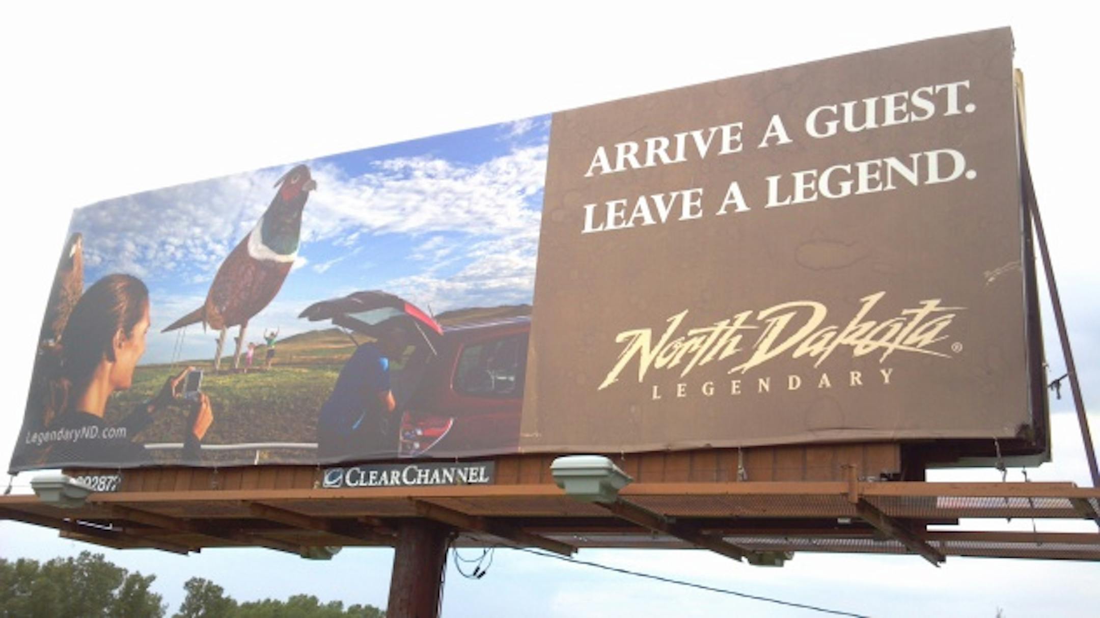 I was walking my 14-week old bird dog pup along a bike trail a quarter mile from Pheasants Forever's National Office this afternoon during my lunch break when I encountered the North Dakota Tourism billboard pictured above.