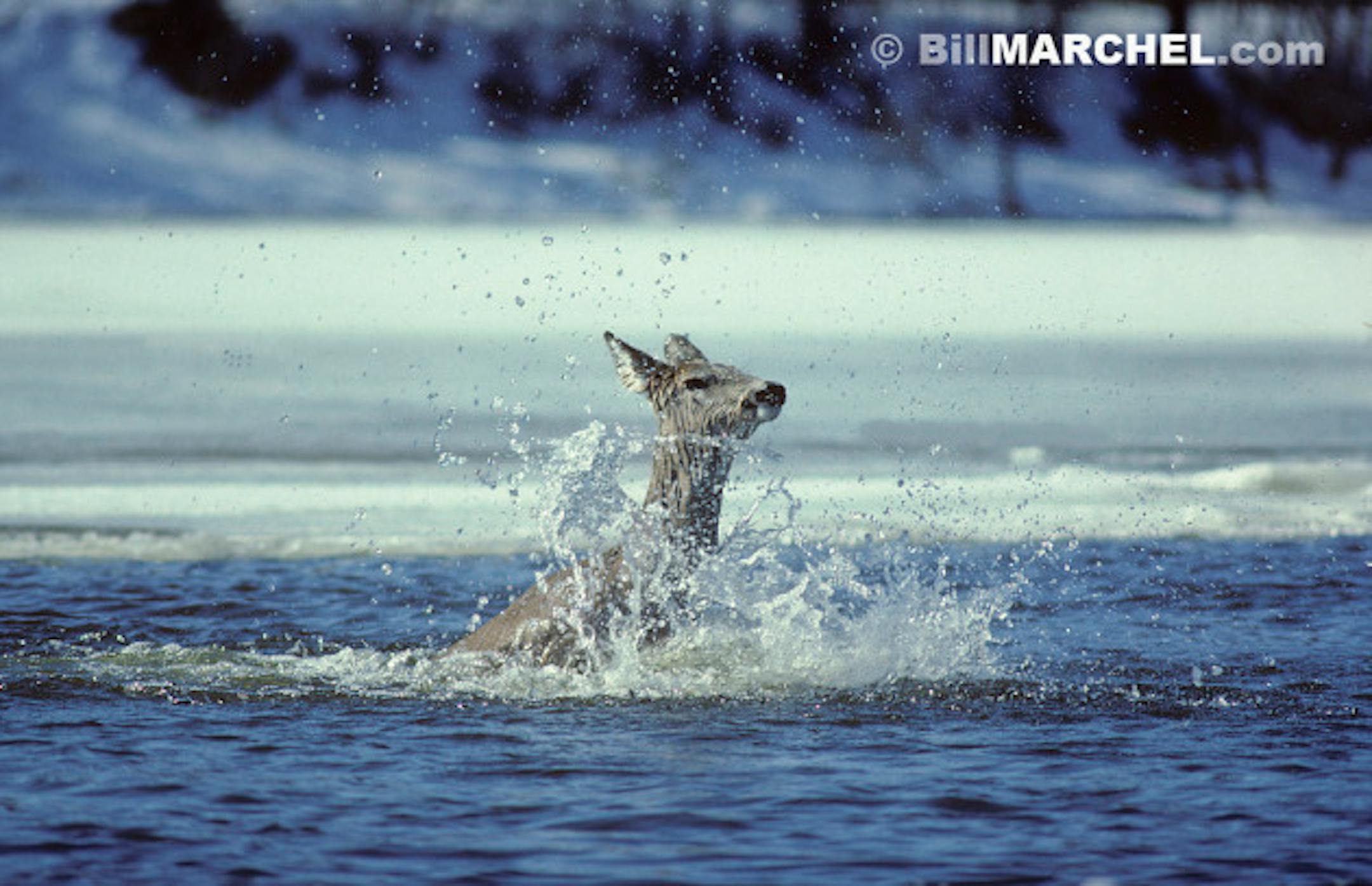 This whitetail doe took an icy plunge. The deer made it to shore safely.