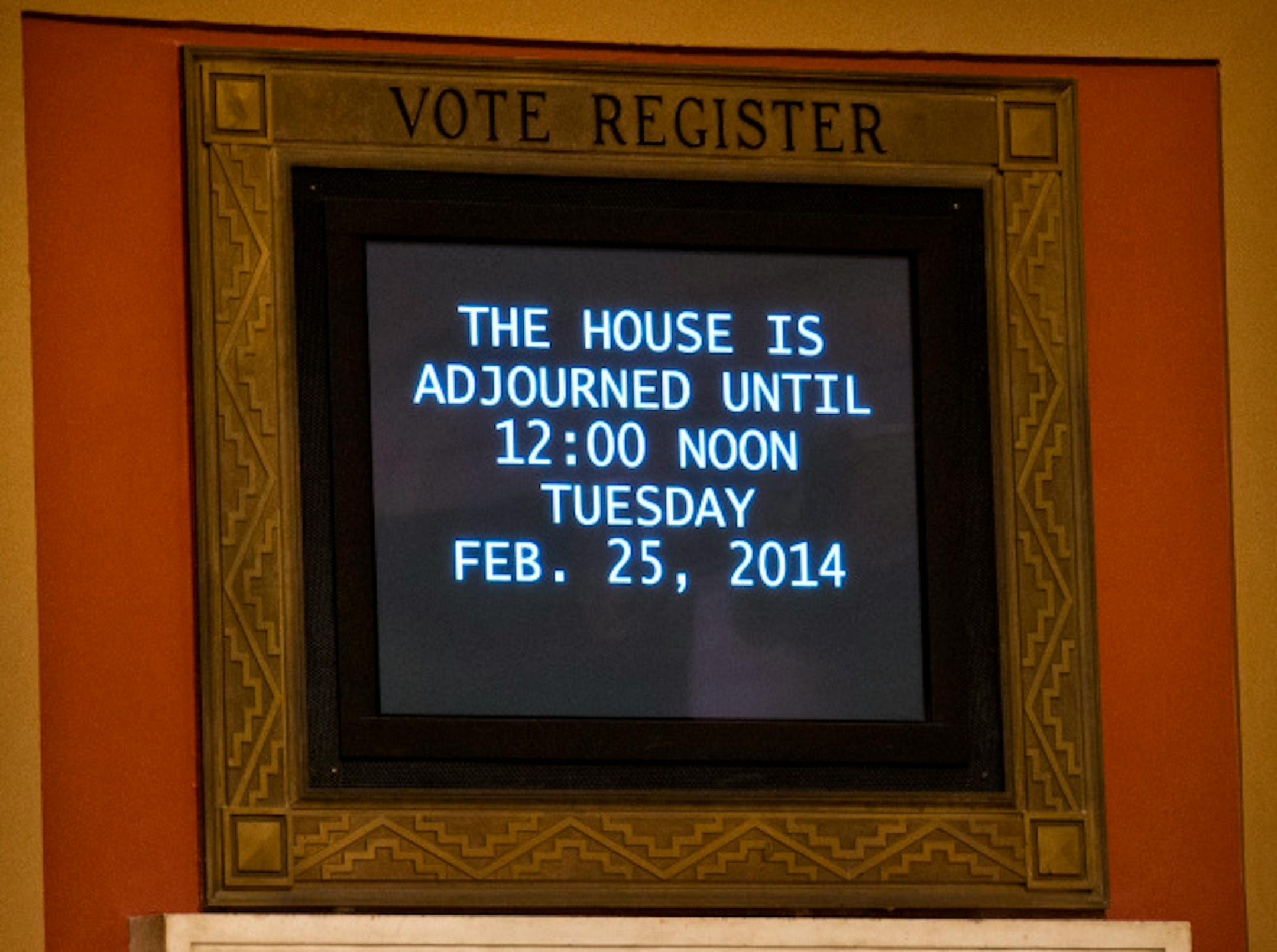 In the final hour of the session, Rep. Clark Johnson stretched during a break in the House as they waited for more information from the Senate