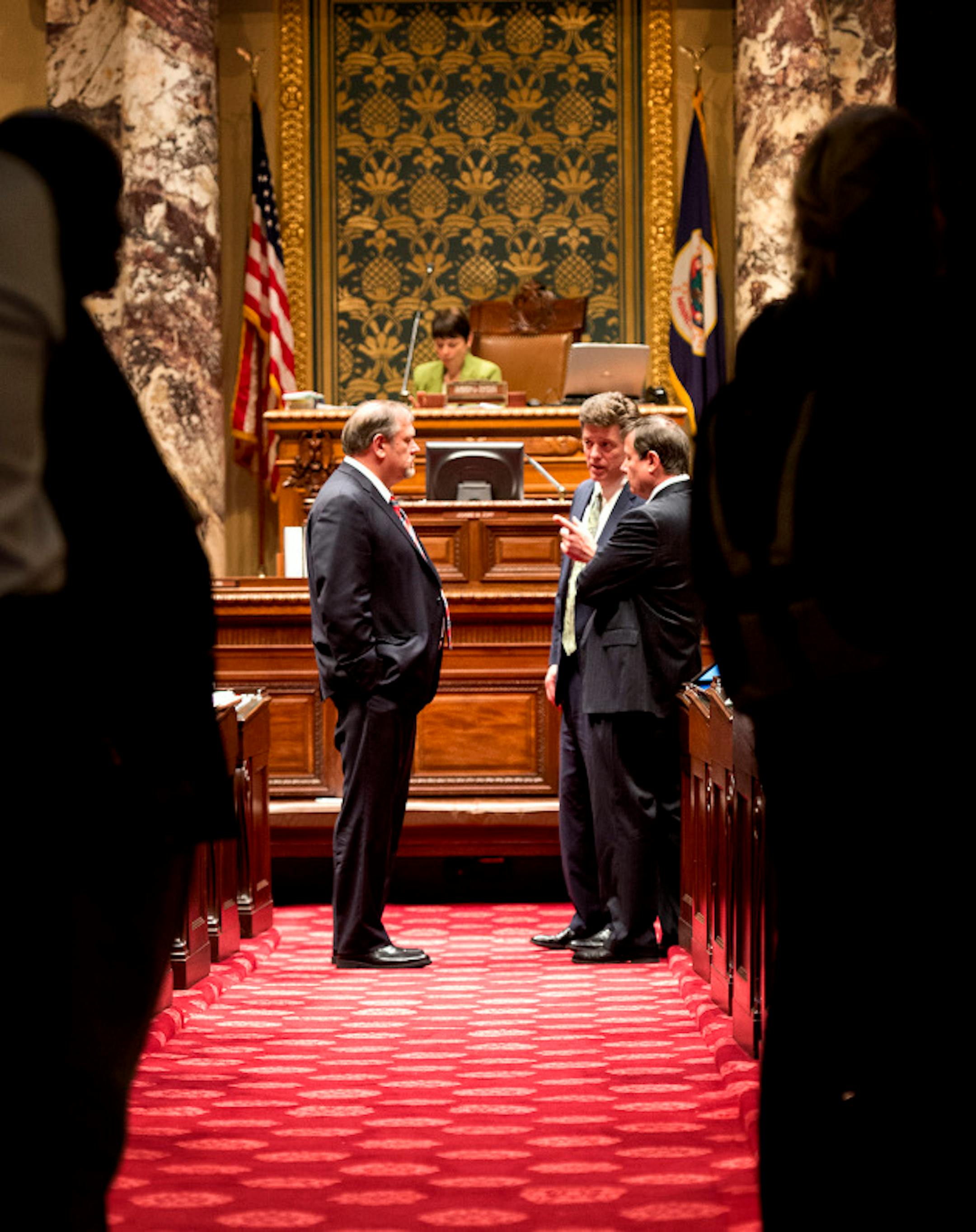 With just a few hours to go until the end of the session, Senate Majority Leader stood on the Senate floor with staff waiting while final bills are negotiated.