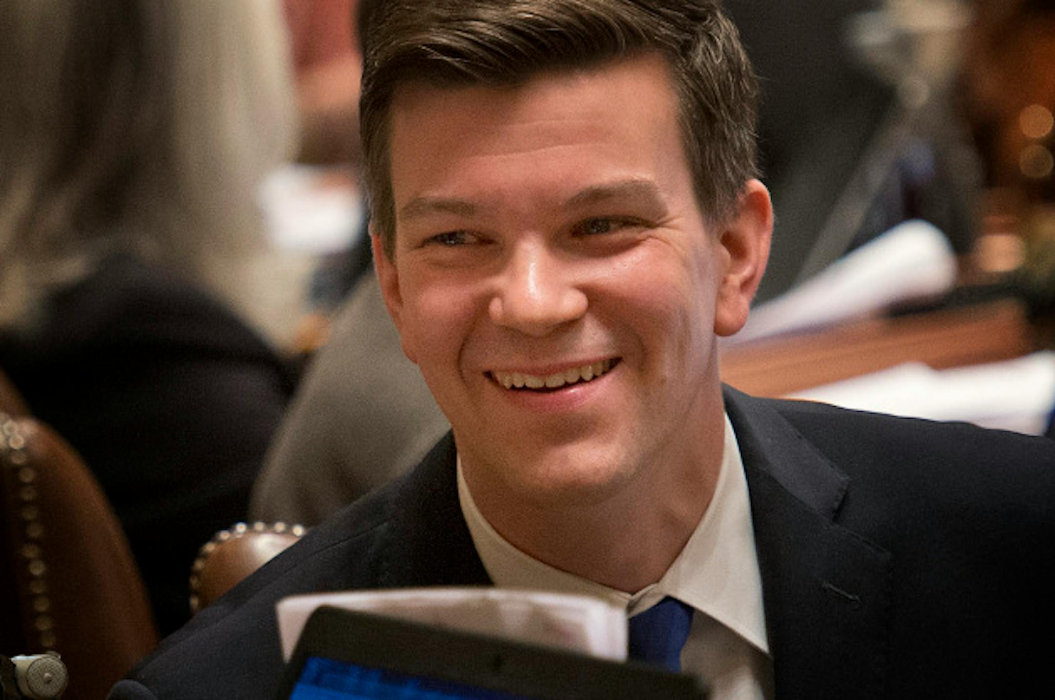 Rep. Ryan Winkler listened to amendments to his minimum wage bill on the House floor.