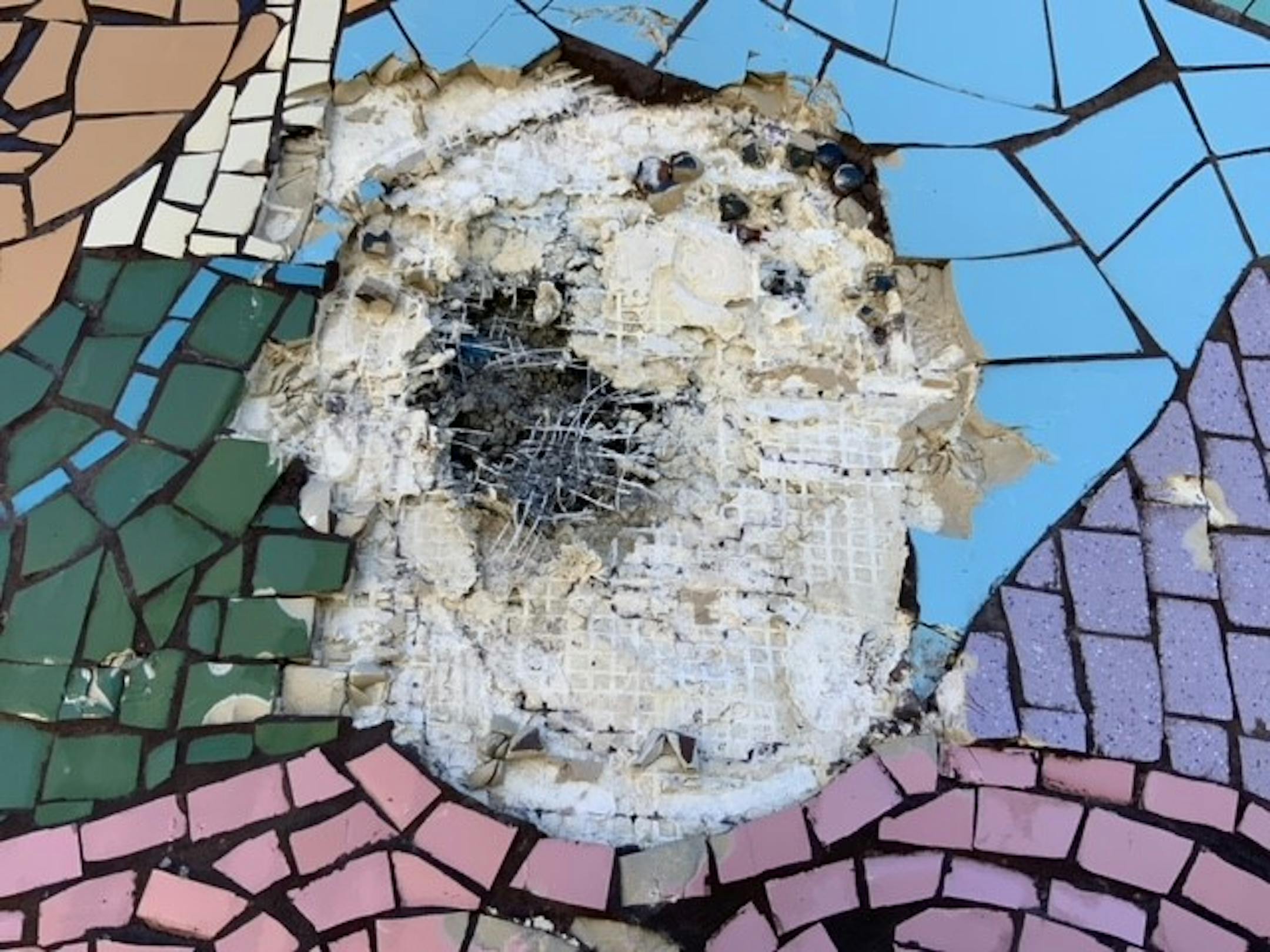 Now the survivors who worked for years to create this memorial, and the artist who crafted its mosaics, are left to pick up the pieces.