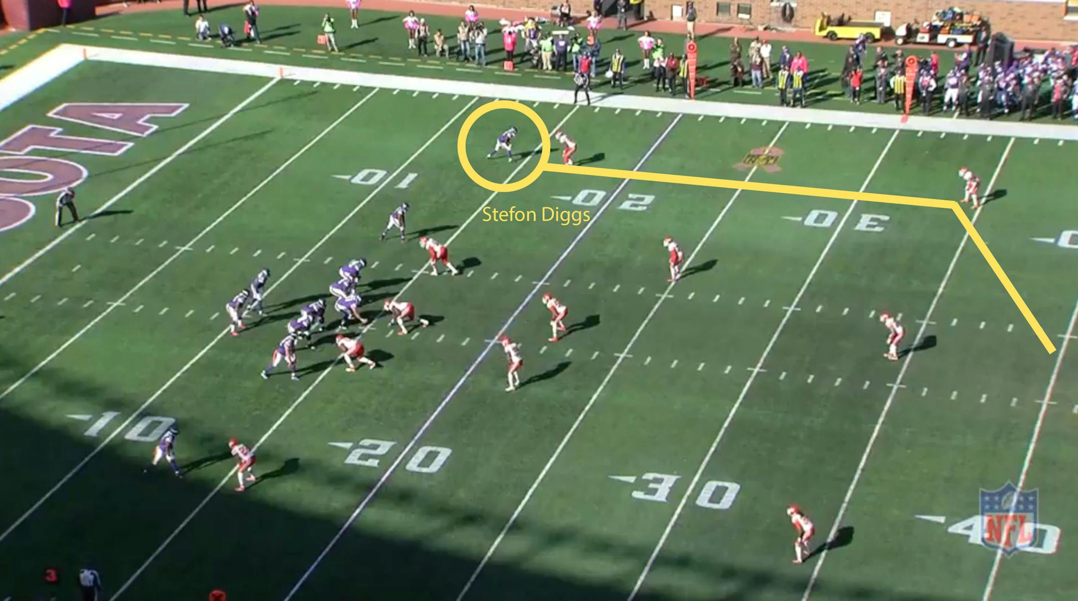 Frame 1: The Vikings lined up four receivers with rookie Stefon Diggs up high against the Chiefs' zone defense.