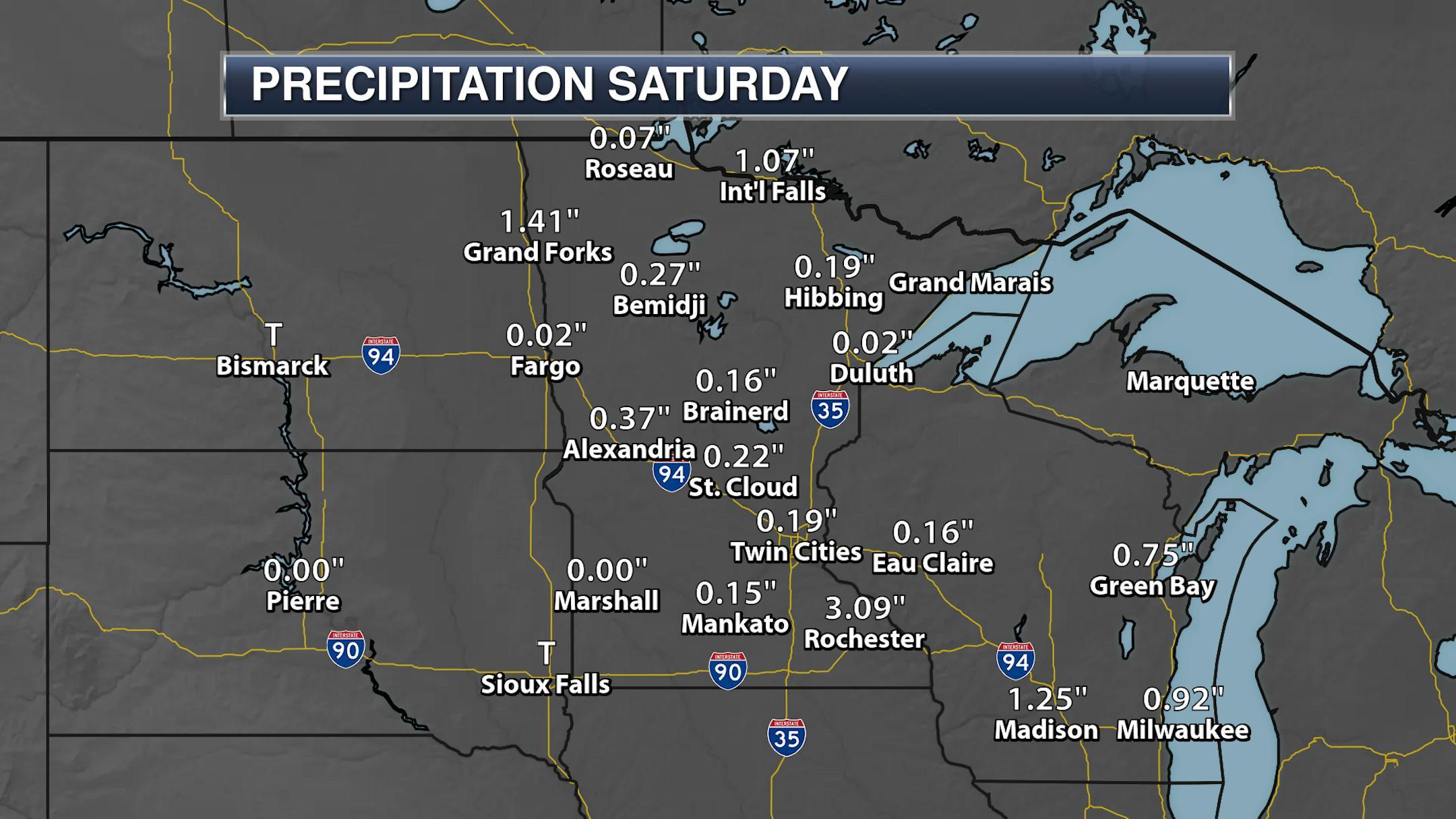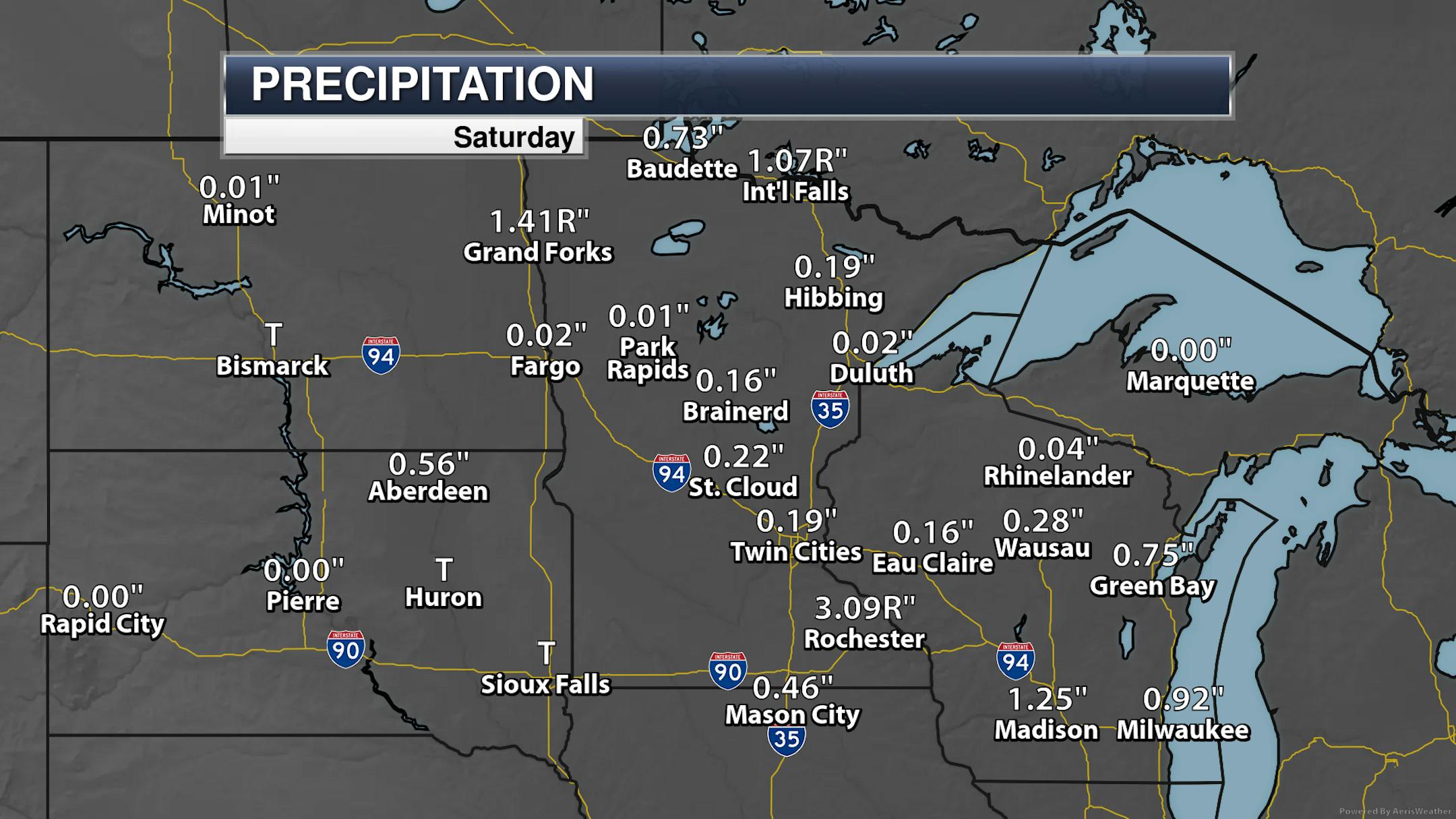 We also saw some much-needed rainfall across the region on Saturday. While MSP only saw 0.19" of rain, some sensors reported at least 0.5-1" across the metro. Some of the heaviest rain fell in southern Minnesota which is where several rounds of storms occurred. This included Rochester, where a daily record of 3.09" of rain fell. We also saw record rain in International Falls and Grand Forks on Saturday. Looking at the storm reports, 5.55" of rain was reported in Grand Meadow, with 5.47" near Lansing.