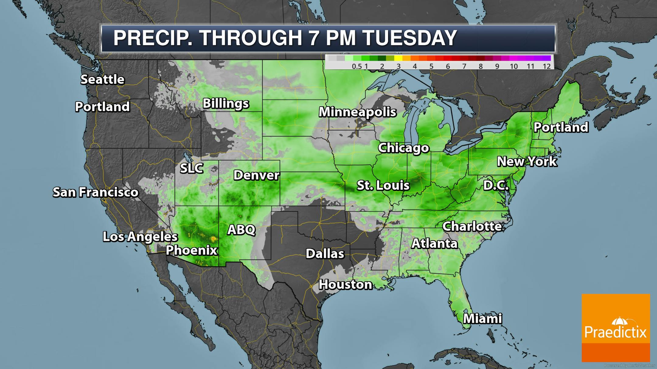 Forecast loop: Tuesday from 1 AM to 7 PM.