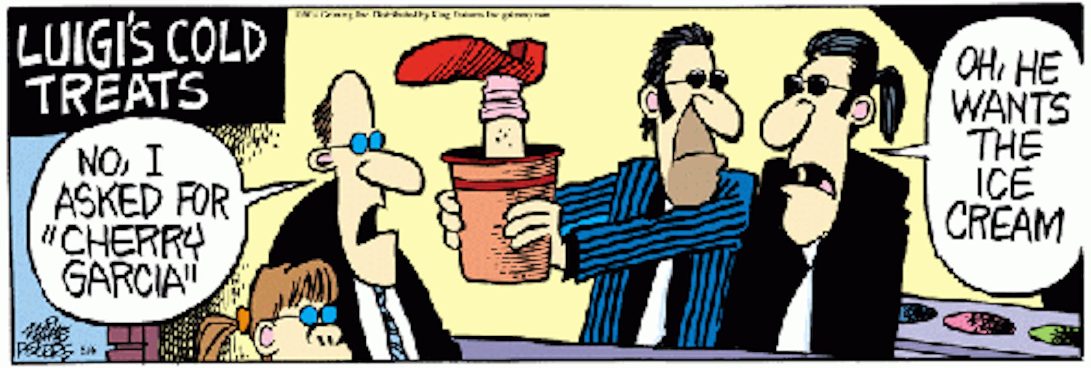 I cannot possibly imagine a sequence of events that would lead a hit man staffing an ice-cream counter to conclude that the customer had requested the leg of a dead man in a bucket.