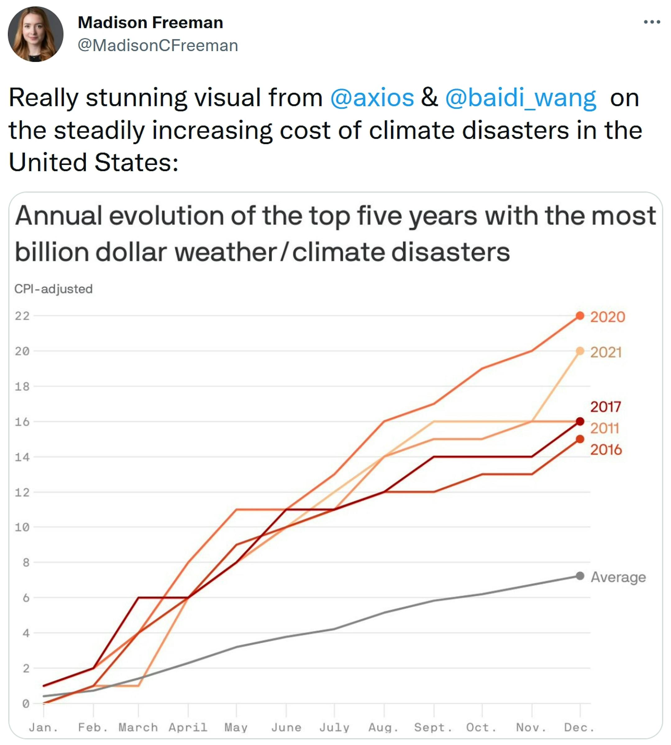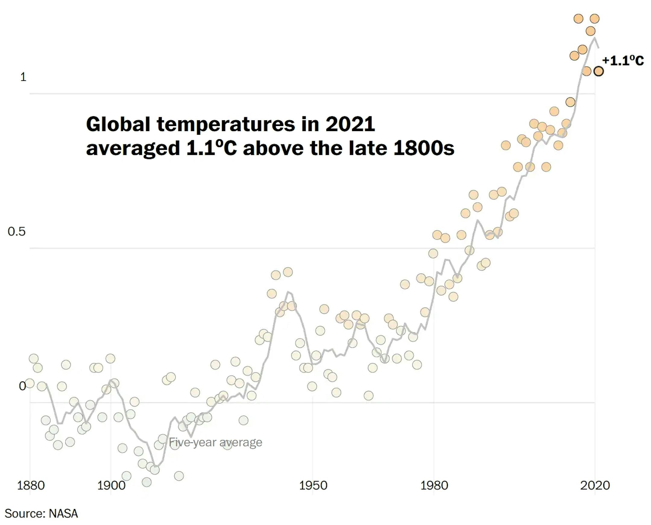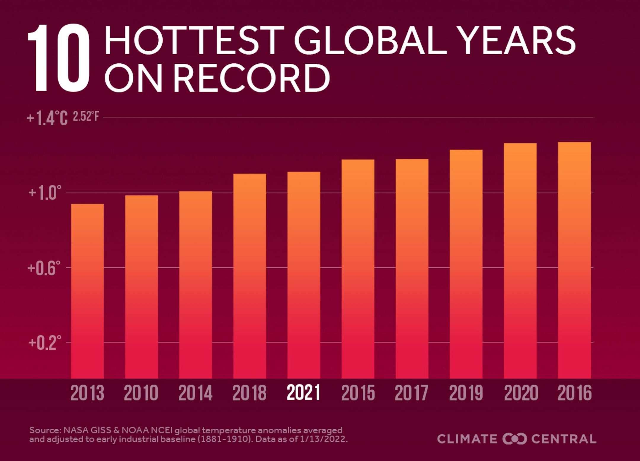 A Vivid View of Extreme Weather: Temperature Records in the U.S. in 2021. The New York Times (paywall) has details: "Temperatures in the United States last year set more all-time heat and cold records than any other year since 1994, according to a New York Times analysis of Global Historical Climatology Network data. Heat waves made up most of these records. All-time heat records were set last year at 8.3 percent of all weather stations across the nation, more than in any year since at least 1948, when weather observations were first digitally recorded by the U.S. government. The world has been warming by almost two-tenths of a degree per decade. Extreme-temperature events can often demonstrate the most visible effects of climate change. "We do not live in a stable climate now," said Robert Rohde, the lead scientist at Berkeley Earth, an independent organization focused on environmental data science. "We will expect to see more extremes and more all-time records being set..."