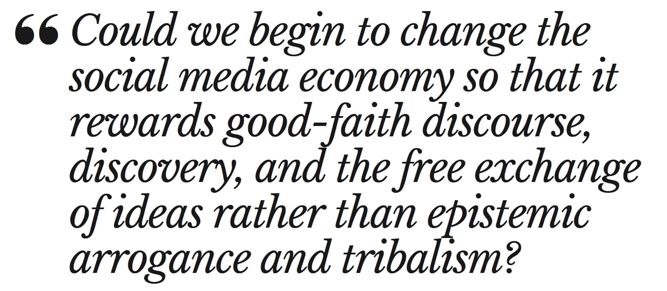 Is Social Media Killing Intellectual Humility? Food for thought from Big Think; here's a clip from a thoughtful post: "...In other words, the internet encourages epistemic arrogance—the belief that one knows much more than one does. The internet's tailored social media feeds and algorithms have herded us into echo chambers where our own views are cheered and opposing views are mocked. Sheltered from serious challenge, celebrated by our chosen mob, we gradually lose the capacity for accurate self-assessment and begin to believe ourselves vastly more knowledgeable than we actually are. But it's not just the social reinforcement mechanism of like-minded crowds that is killing intellectual humility. It's also our own digital trails—the permanent records of our previous opinions..."