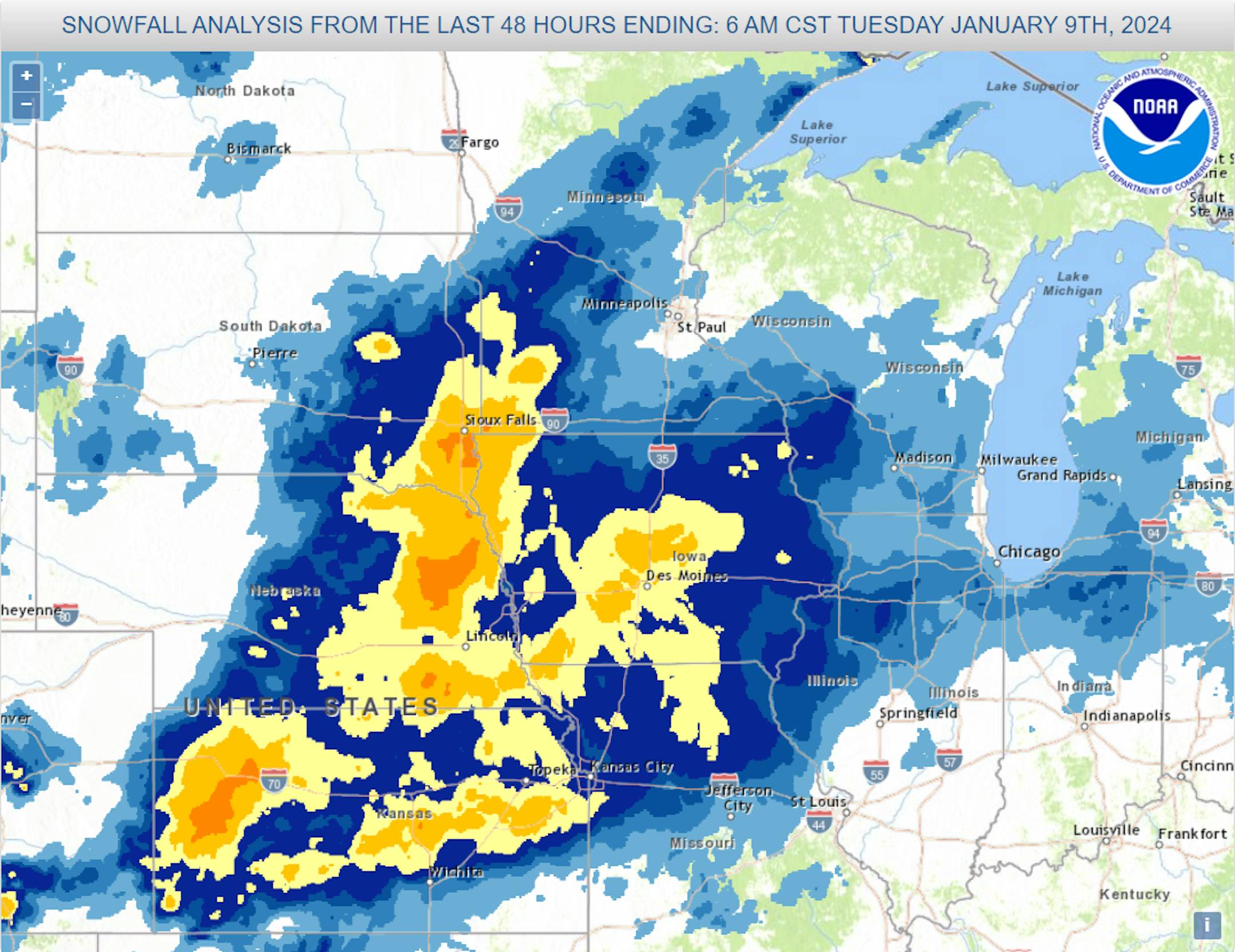 Parts of the Midwest got pummeled by heavy snow over the last few days, but the Twin Cities was spared the worst of the weather. The MSP Airport only picked up 0.5" of snow, while some folks across far Southwestern MN saw nearly 6" to 8" of snow. Meanwhile, Sioux Falls, SD picked up close to a foot!