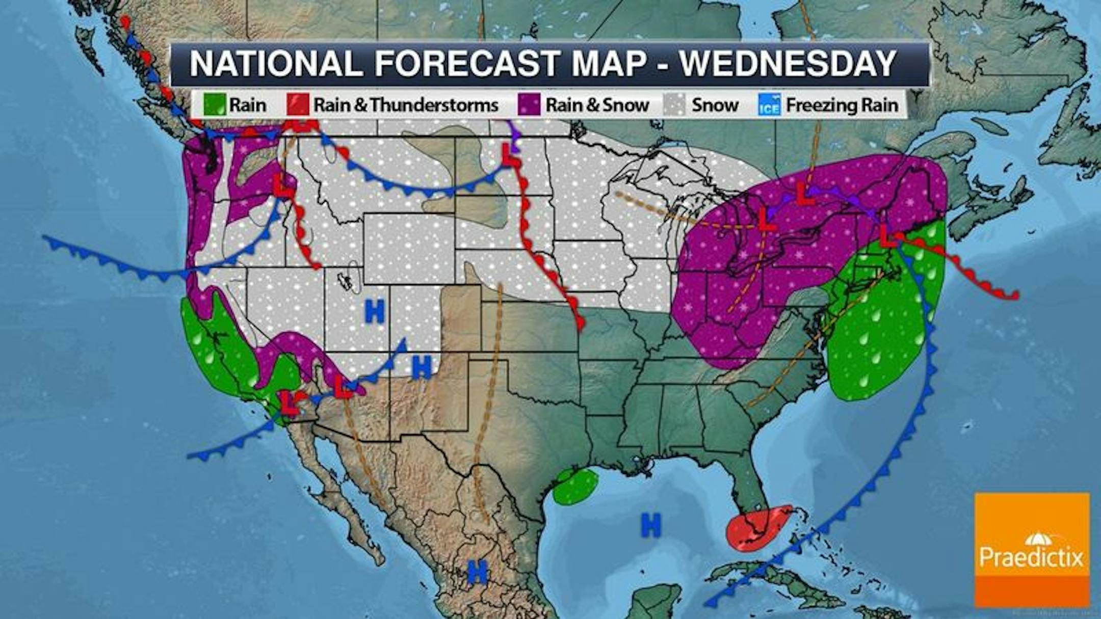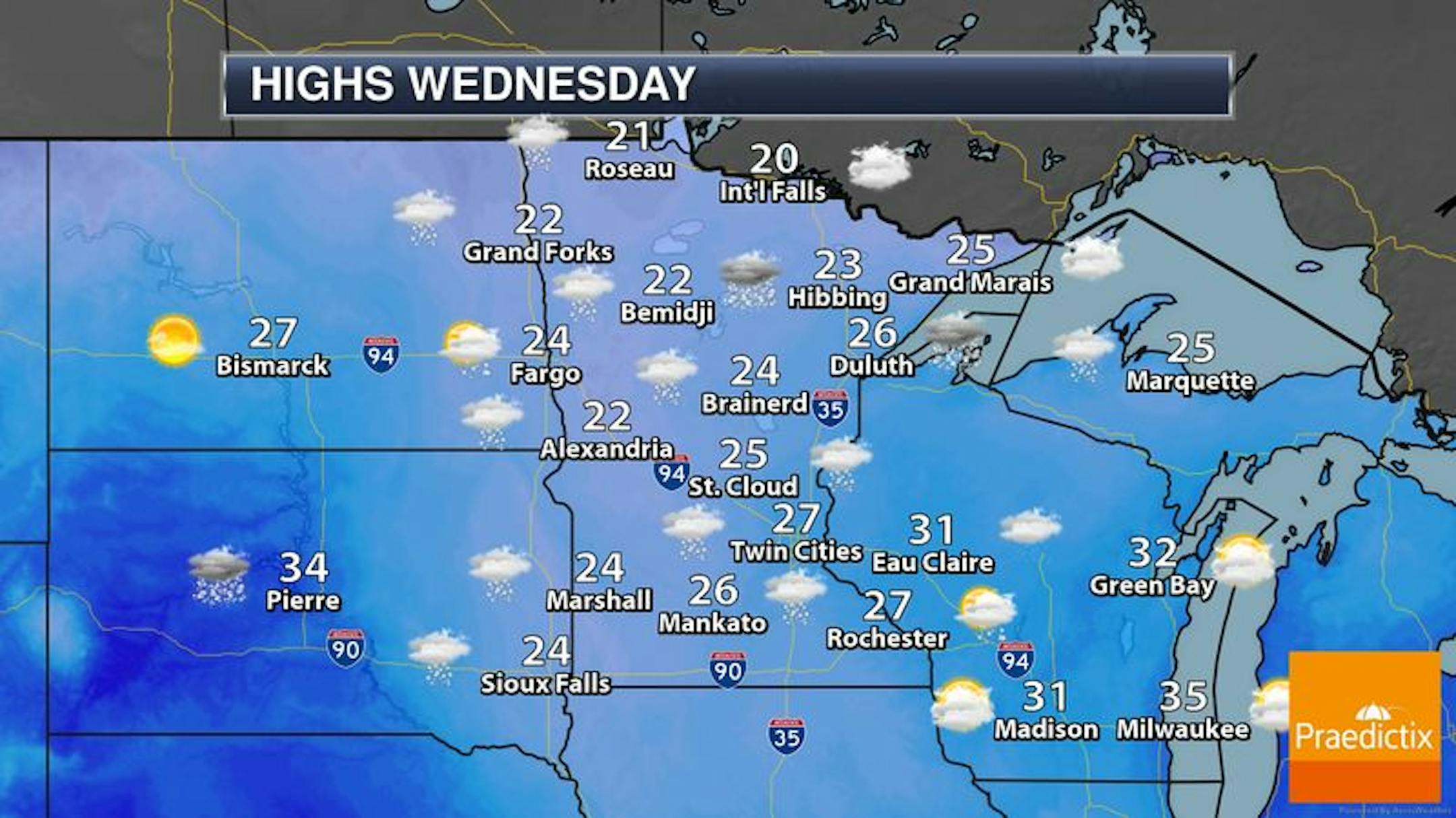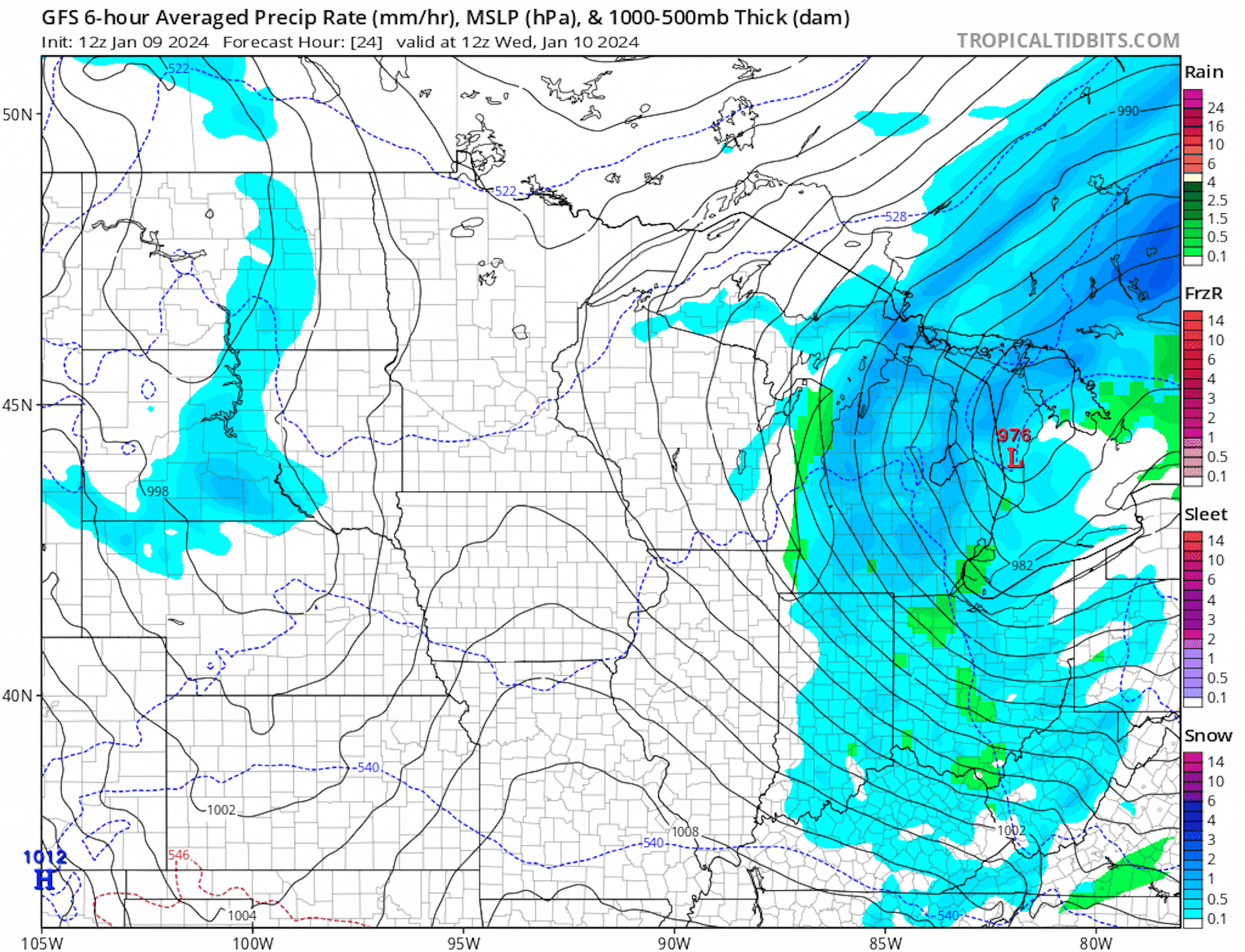 The storm system responsible for our snow earlier this week will continue to move east across the Great Lakes Region early Wednesday. There will be another brief shot of snow across the Midwest and Great Lakes PM Wednesday into early Thursday before another bigger storm system develops late week and into the weekend across the Midwest and Great Lakes late week and weekend.